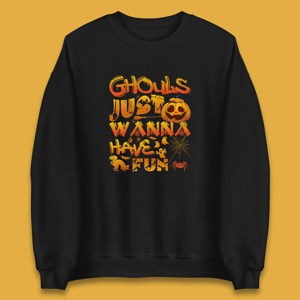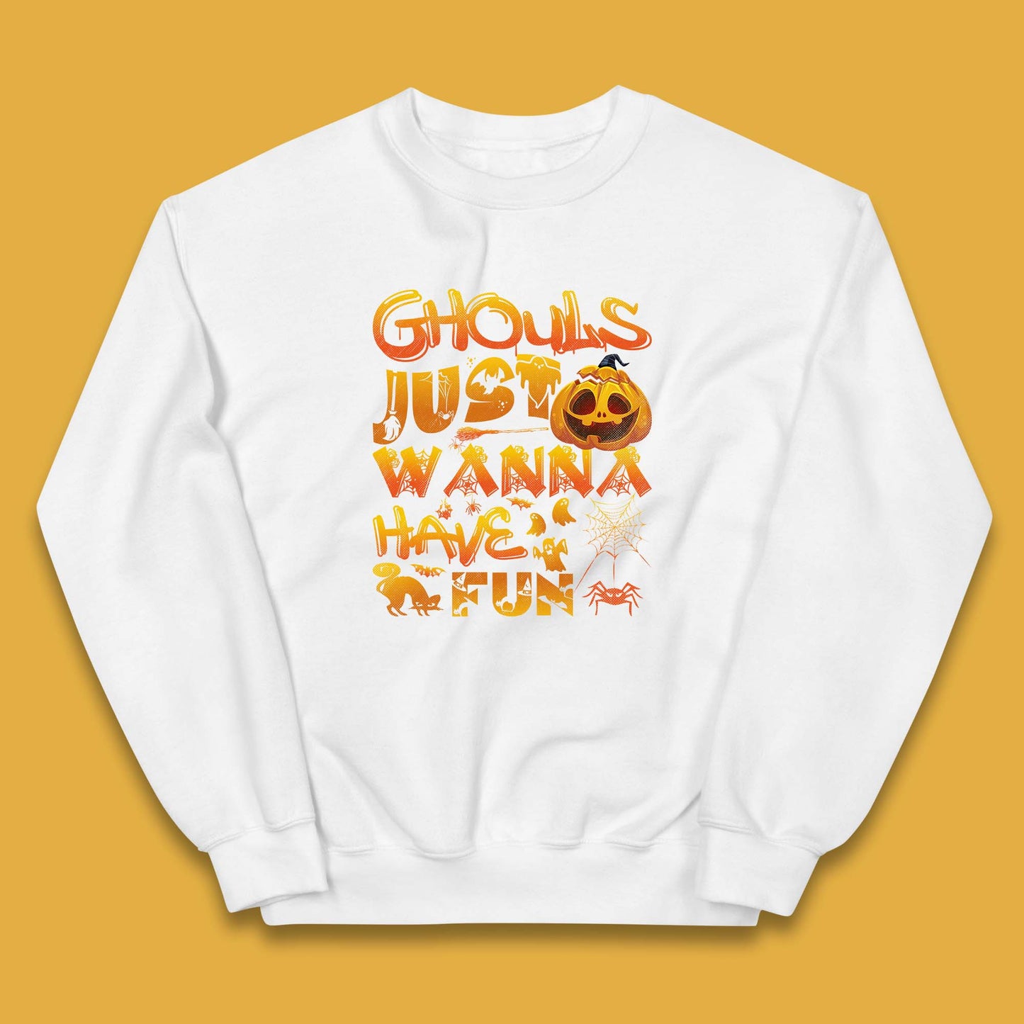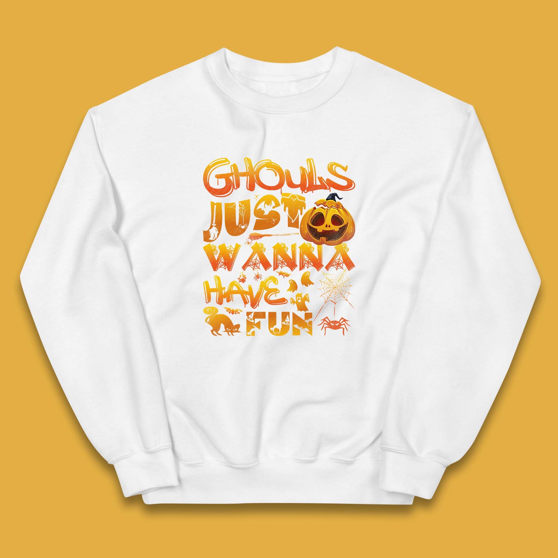 Ghouls Just Wanna Have Fun Halloween Disco Ghost Ghouls Night Out Spooky Season Kids Jumper