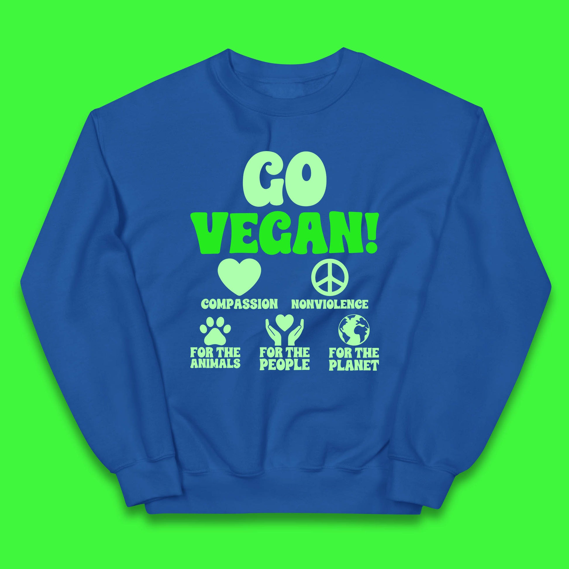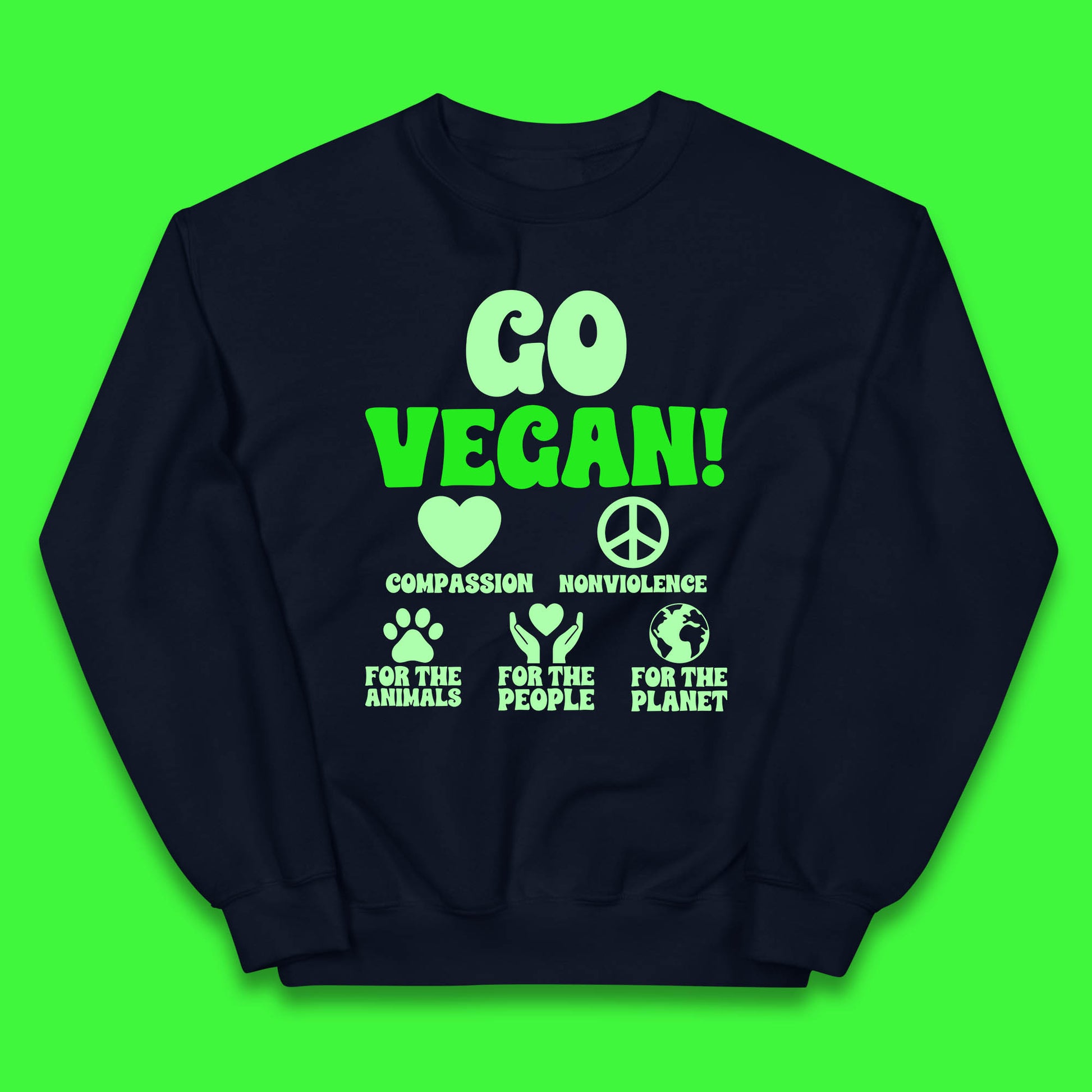 Go Vegan Compassion Nonviolence For The Animals For The People For The Planet Kids Jumper