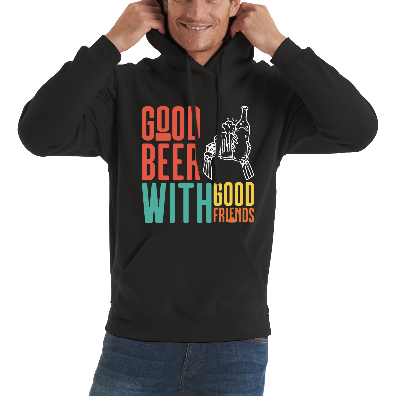 Enjoy the perfect combination of good beer and good company with our "Good Beer With Good Friends" Unisex Hoodie. This cozy and stylish hoodie is perfect for relaxing with friends or simply celebrating your love for great brews and even better company.