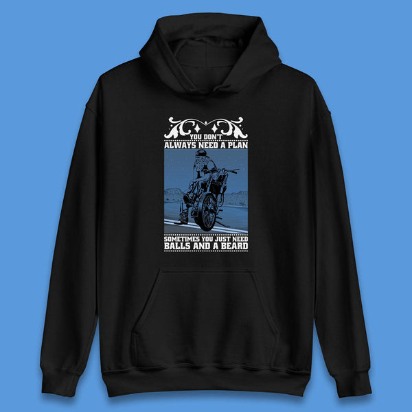 You Don't Always Need A Plan Sometimes You Just Need Balls And A Beard Funny Old Man Biker Unisex Sweatshirt