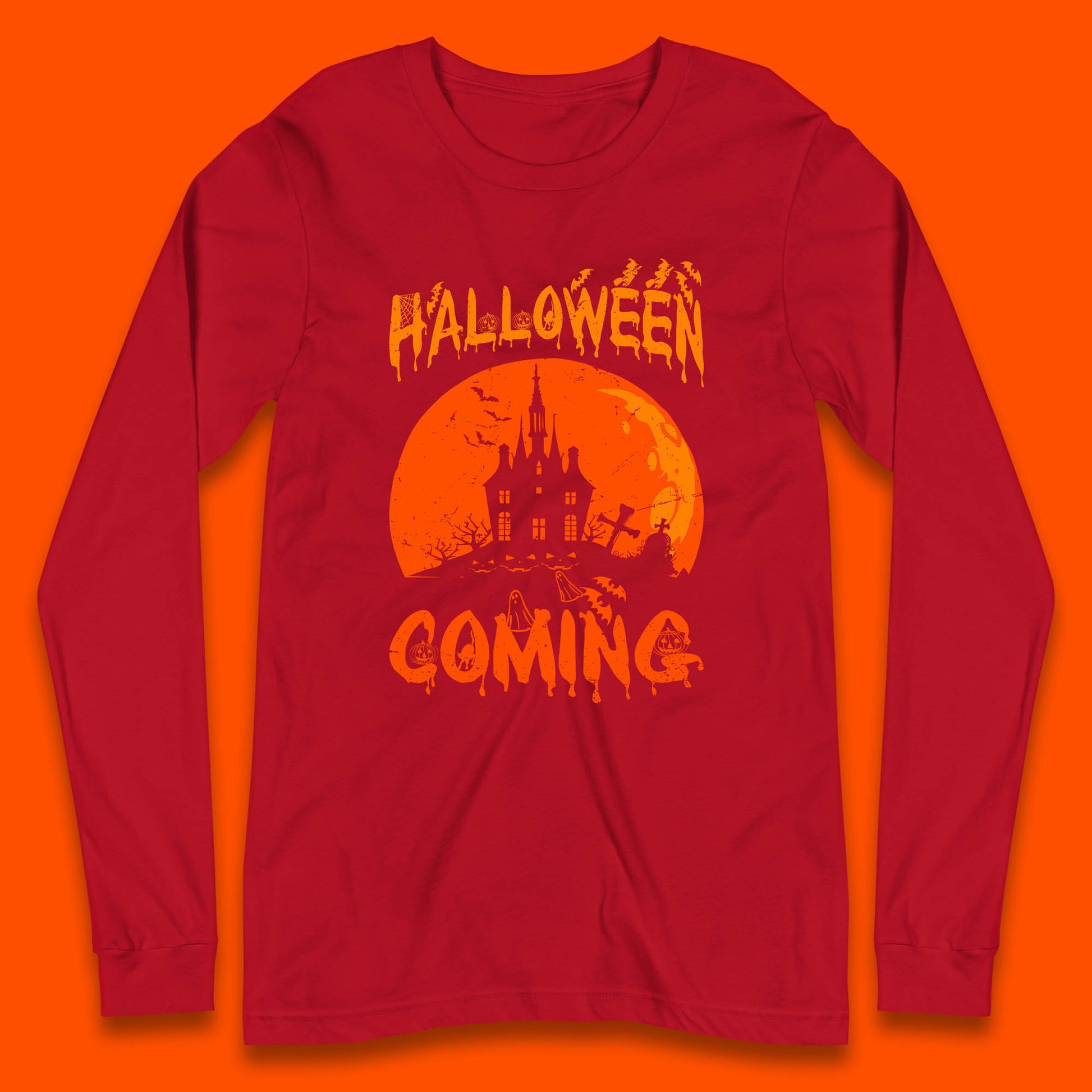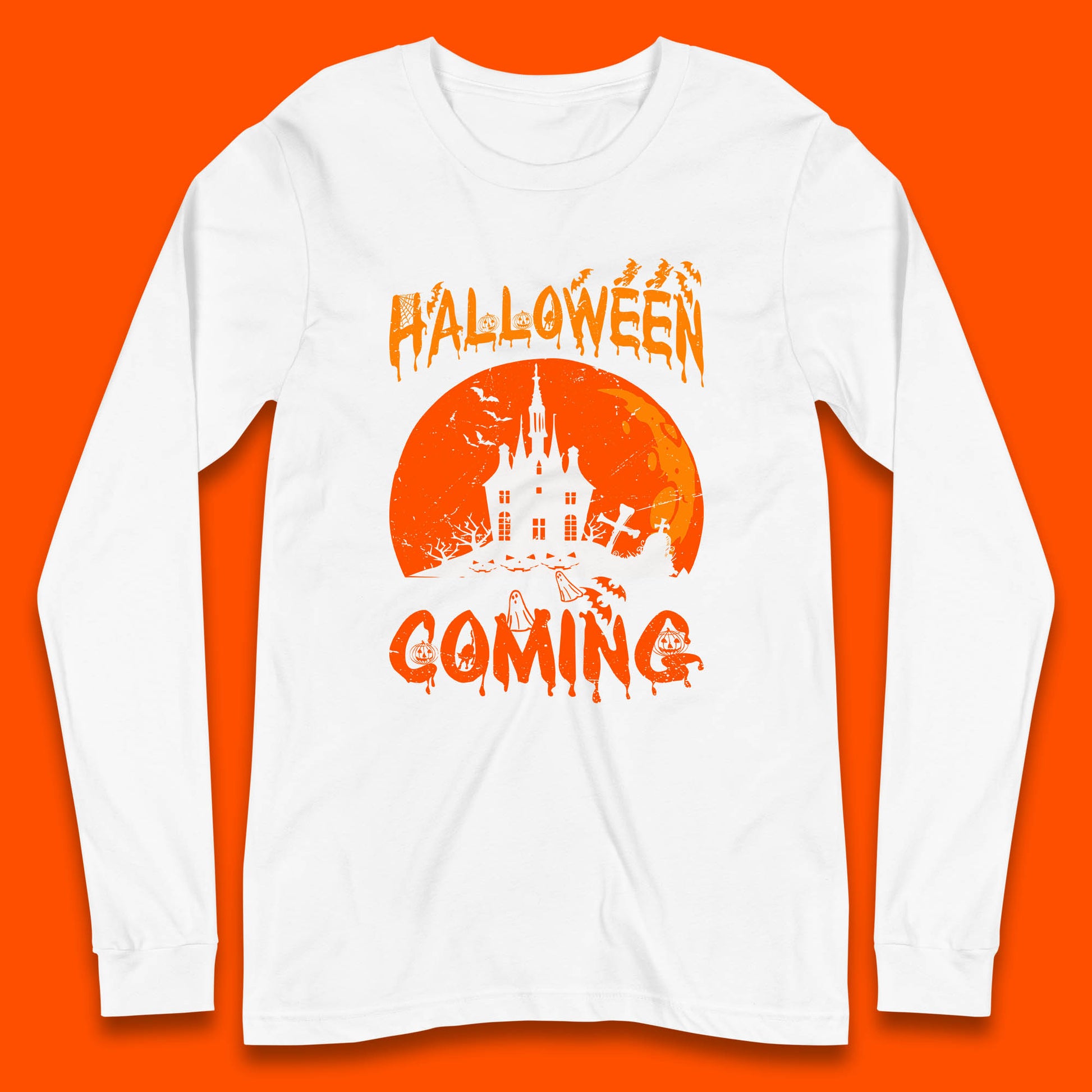 Halloween Coming Horror Scary Ghost Haunted House Spooky Season Long Sleeve T Shirt