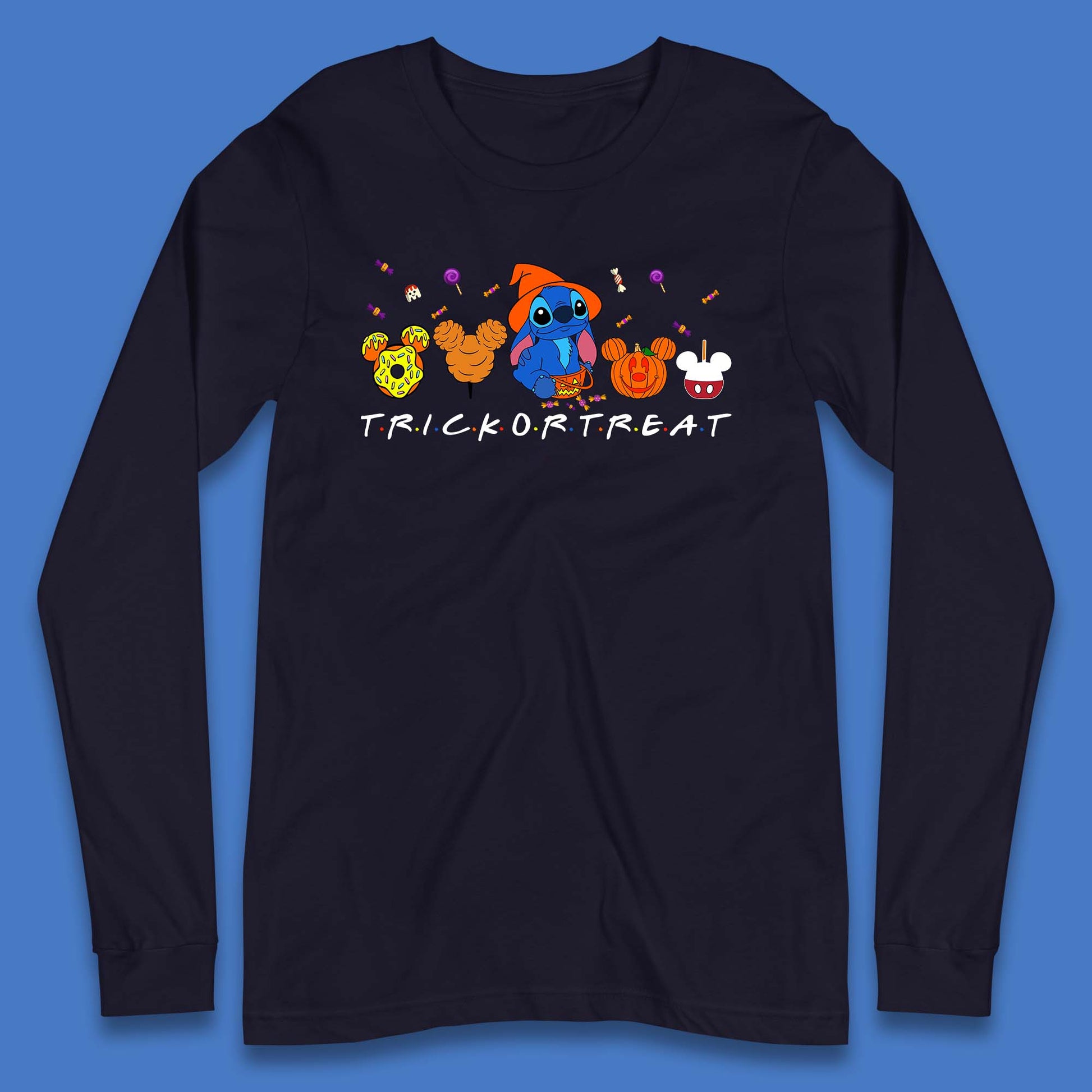 Halloween Disney Stitch Snacks Trick Or Treat Stitch And Mickey Mouse Friends Spoof Disneyland Snacks Long Sleeve T Shirt