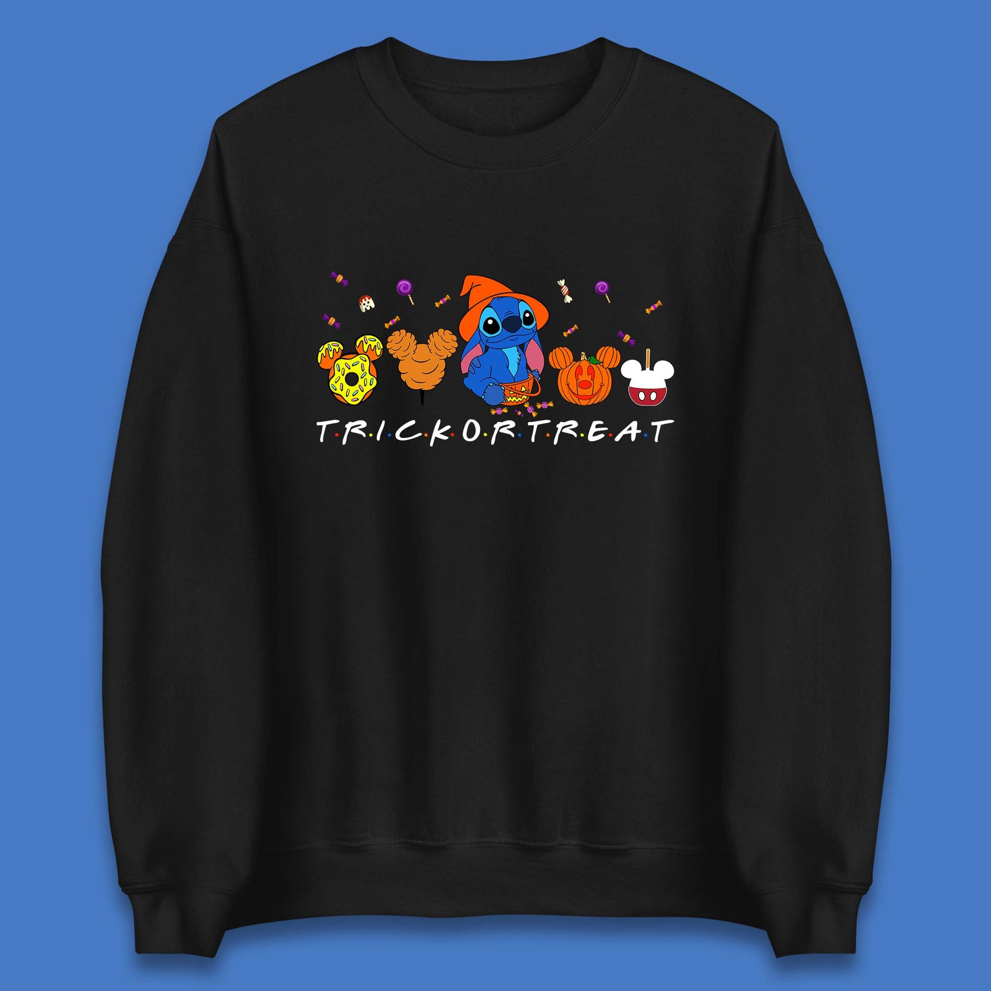 Halloween Disney Stitch Snacks Trick Or Treat Stitch And Mickey Mouse Friends Spoof Disneyland Snacks Unisex Sweatshirt