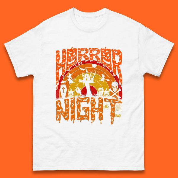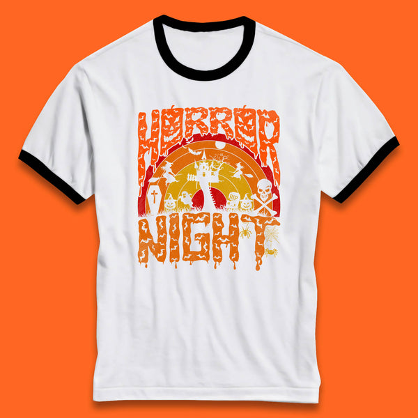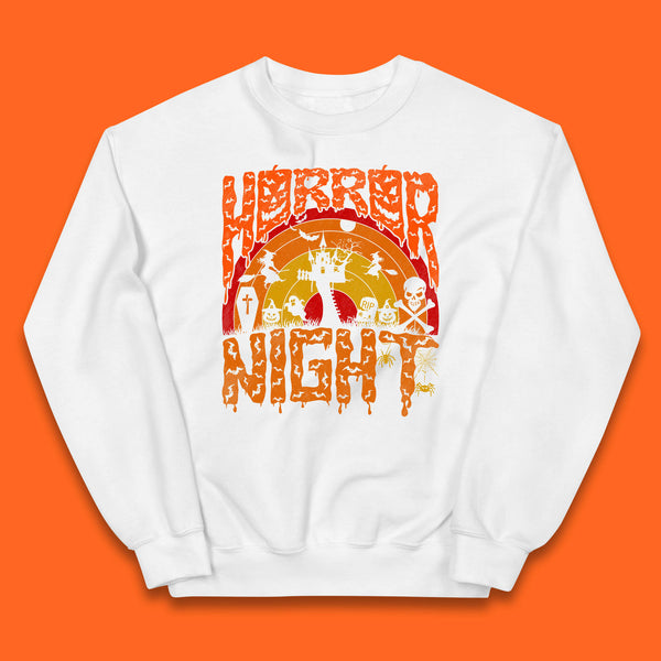 Halloween Horror Night Vintage Rainbow Flying witches Scary Boo Spooky Festive Night Kids T Shirt
