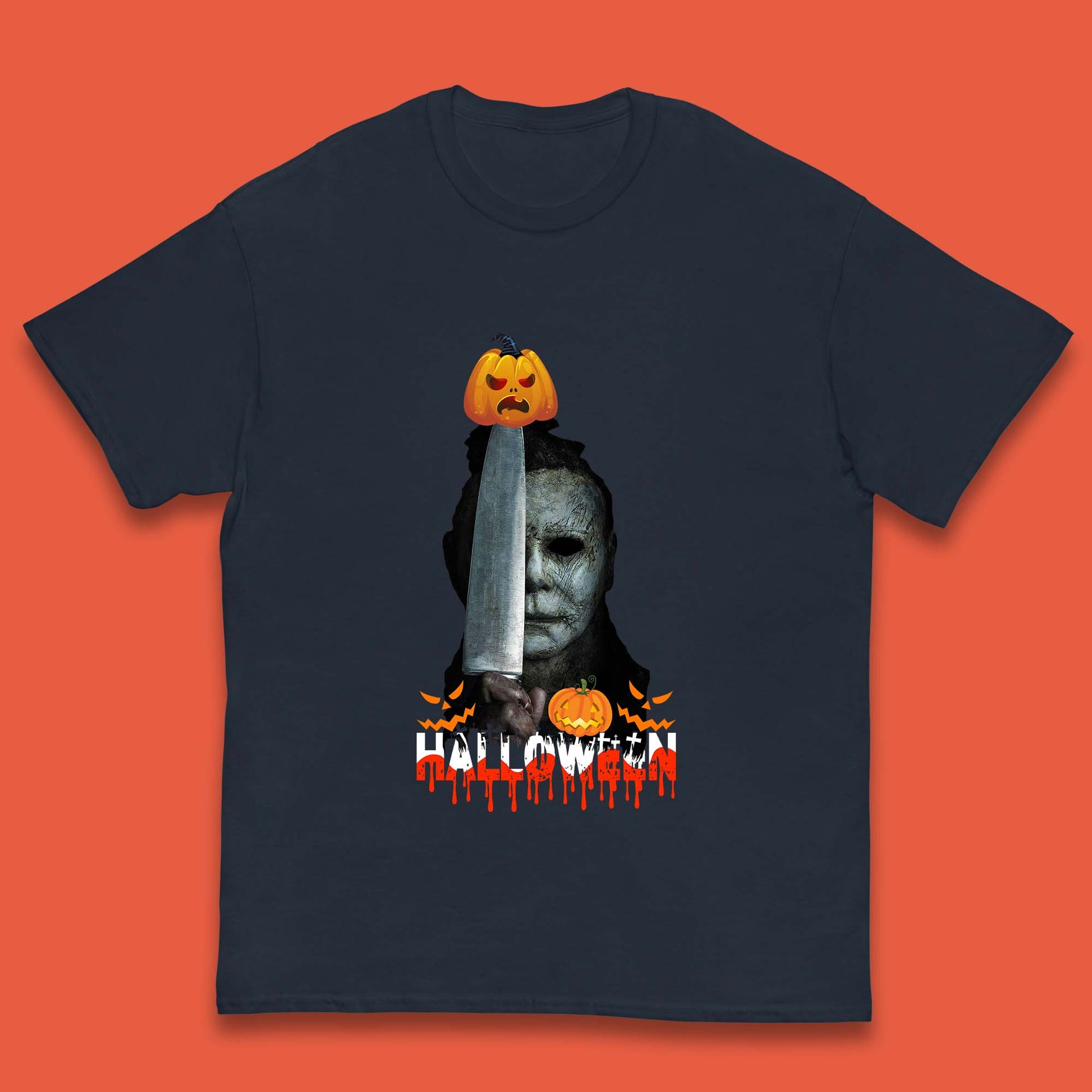 Halloween Michael Myers Holding Knife Pumpkin Horror Movie Character Serial Killer Kids T Shirt