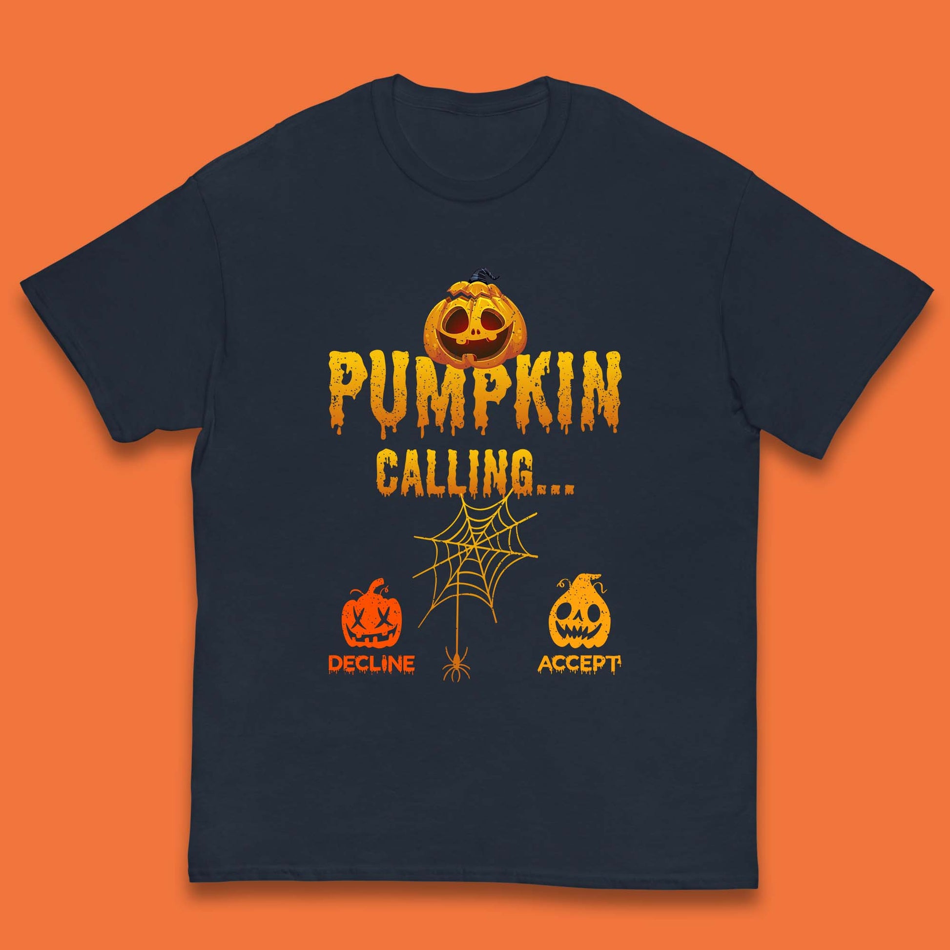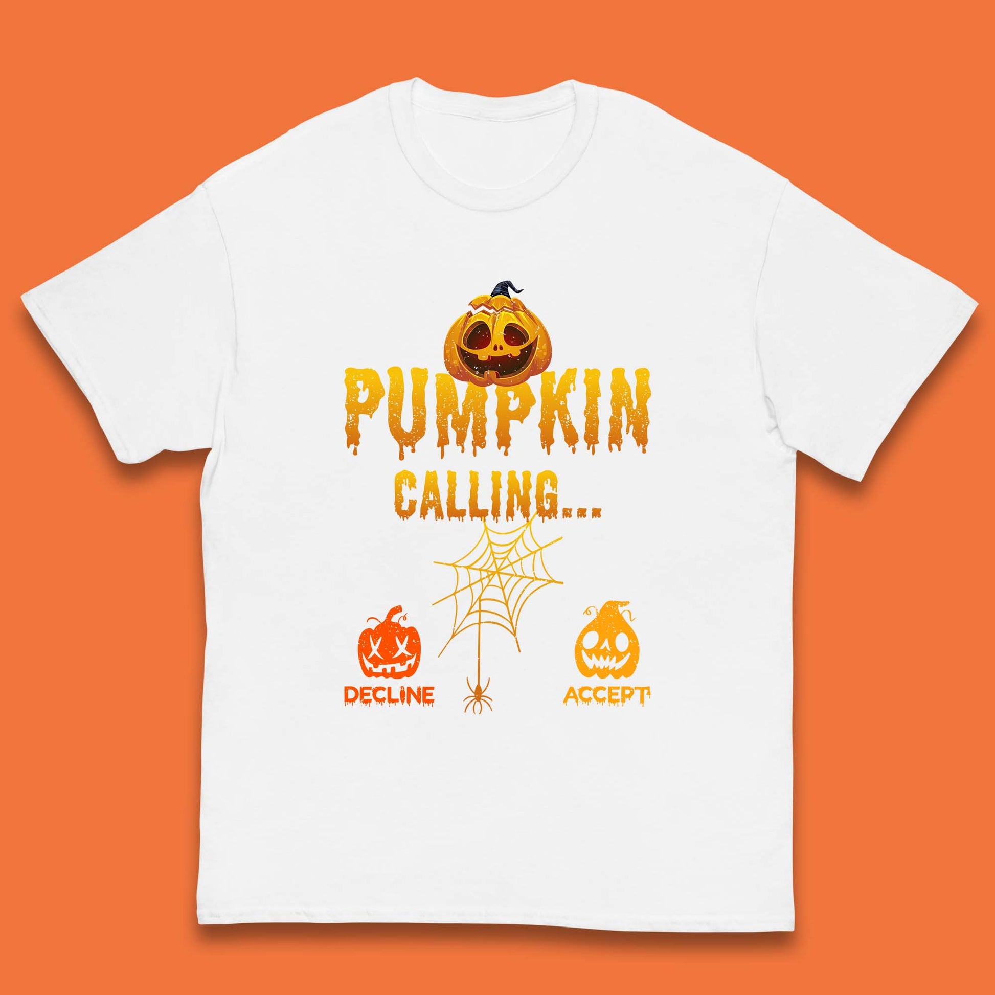 Halloween Pumpkin Calling Accept Decline Funny Jack O Lantern Horror Scary Phone Call Kids T Shirt