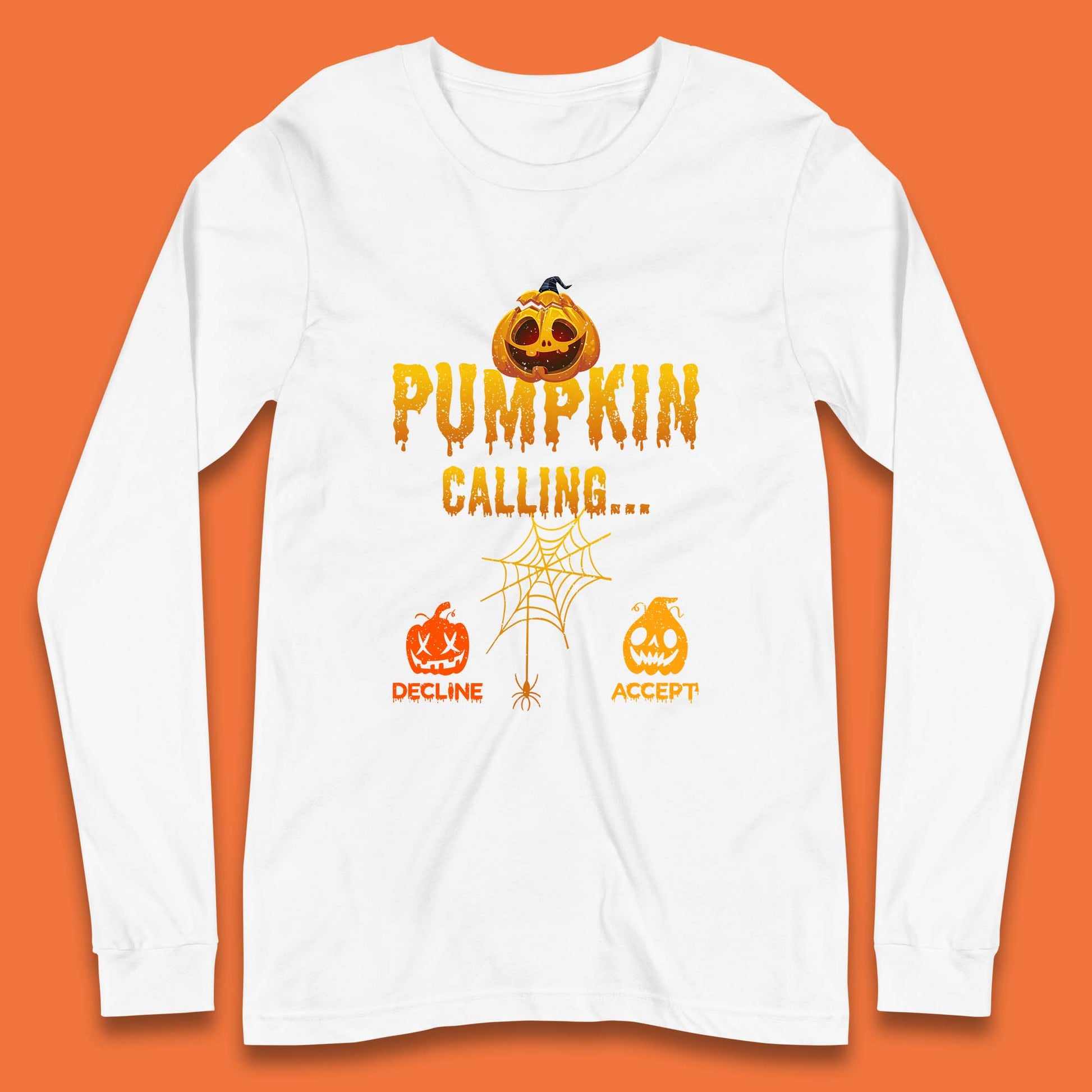 Halloween Pumpkin Calling Accept Decline Funny Jack O Lantern Horror Scary Phone Call Long Sleeve T Shirt