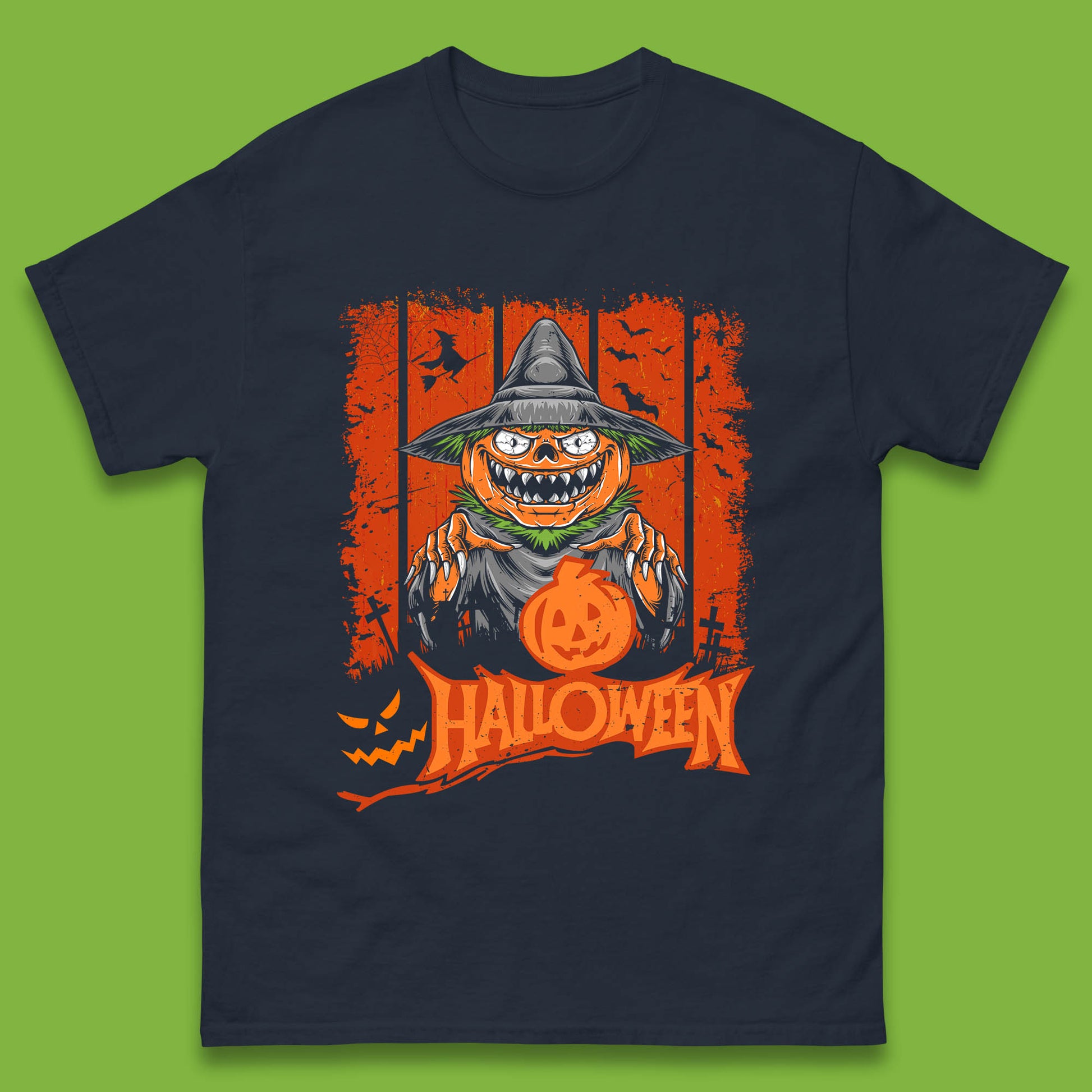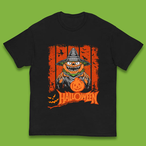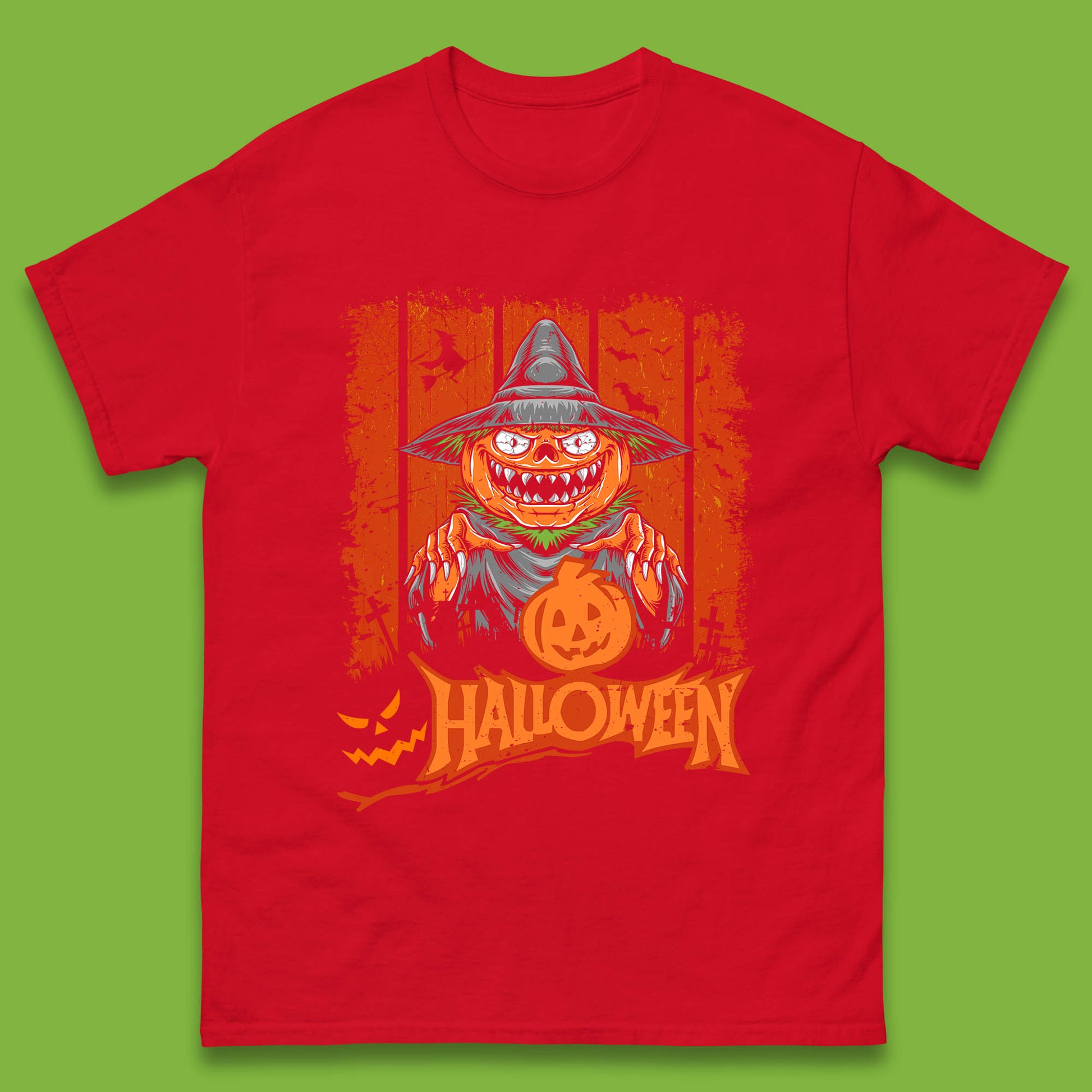 Halloween Pumpkin Head Scarecrow Jack O Lantern Pumpkin Head Horror Scary Vintage Retro Mens Tee Top