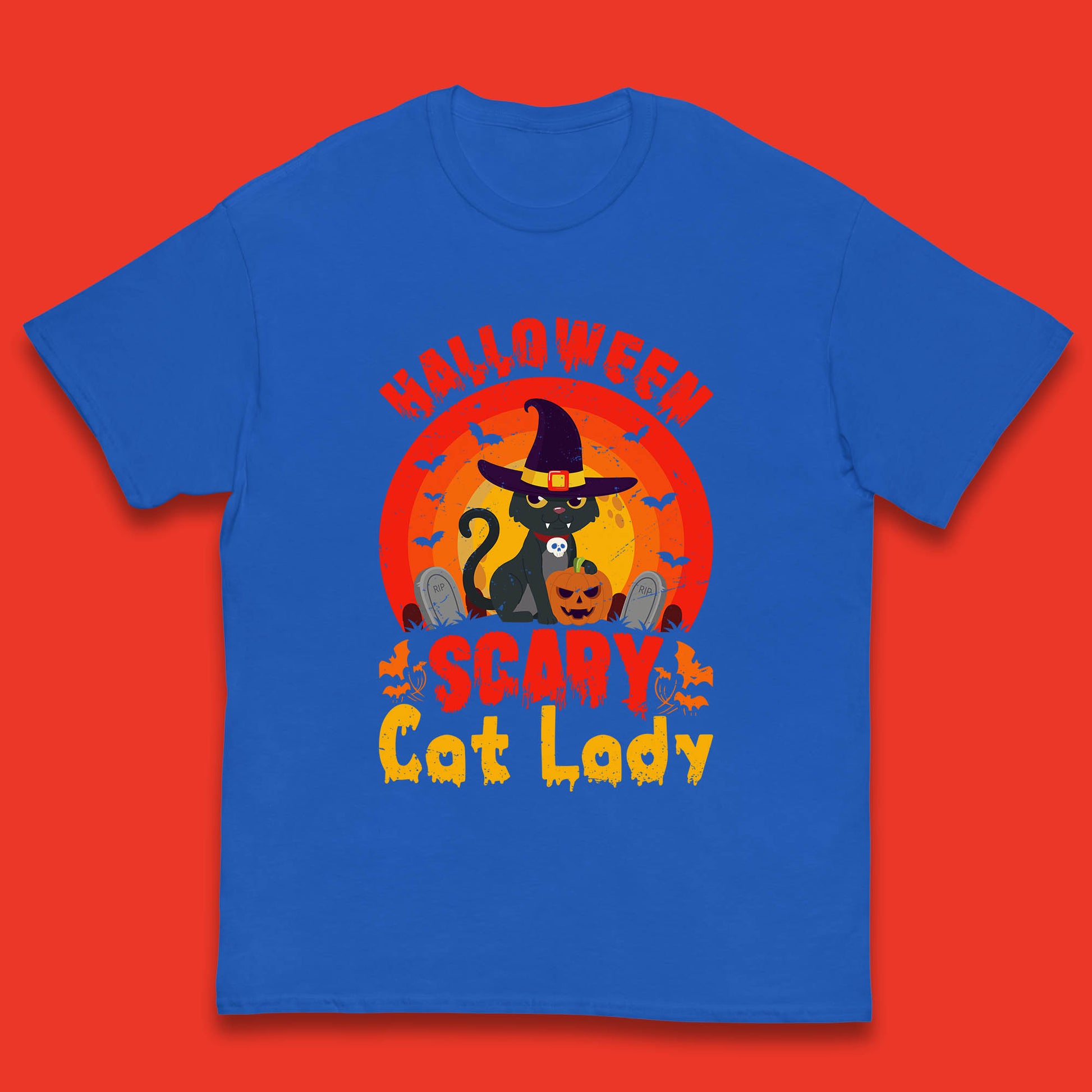 Halloween Scary Cat Lady Horror Spooky Witch Black Cat Lover Kids T Shirt