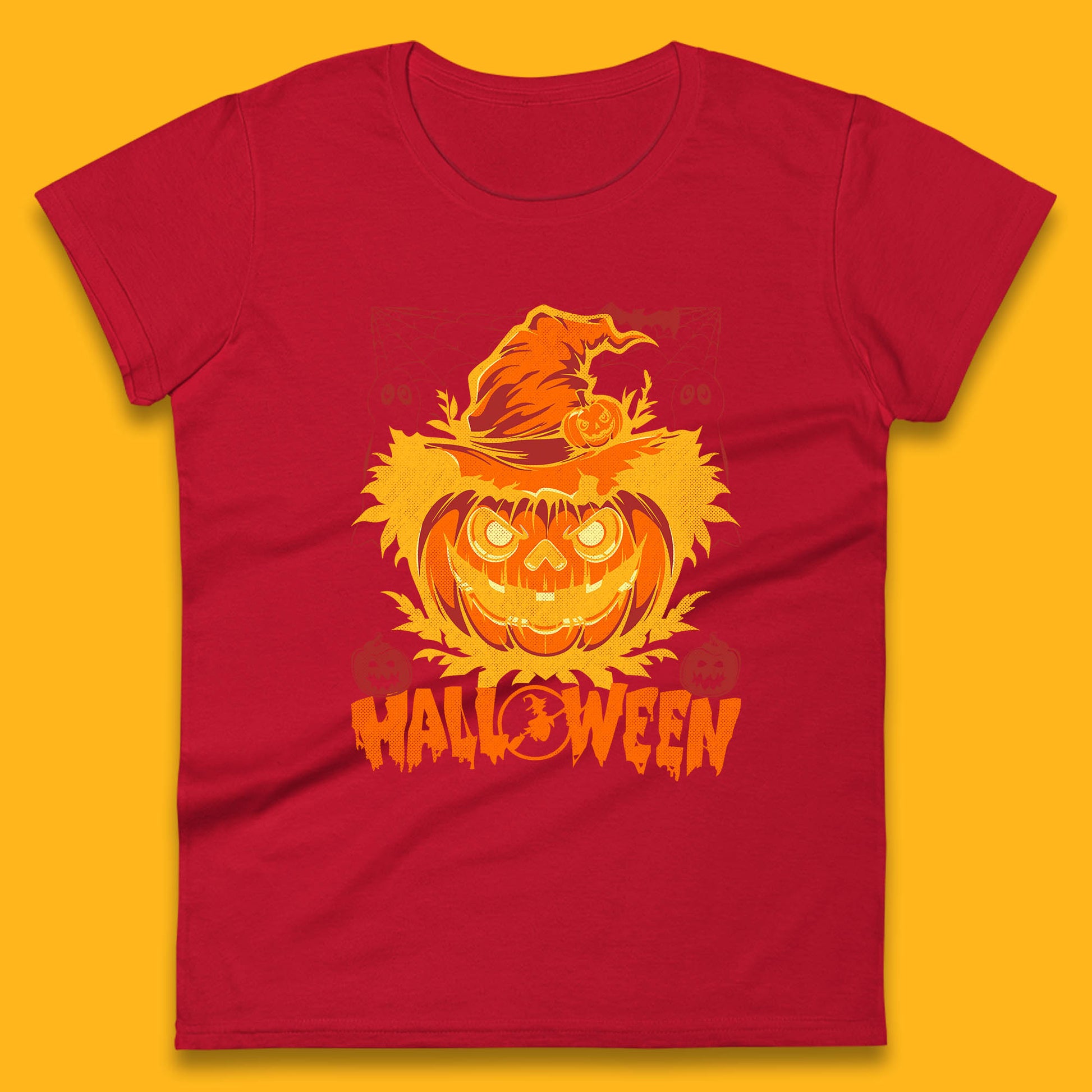 Halloween Scary Pumpkin Face Jack O Lantern Horror Halloween Night Womens Tee Top