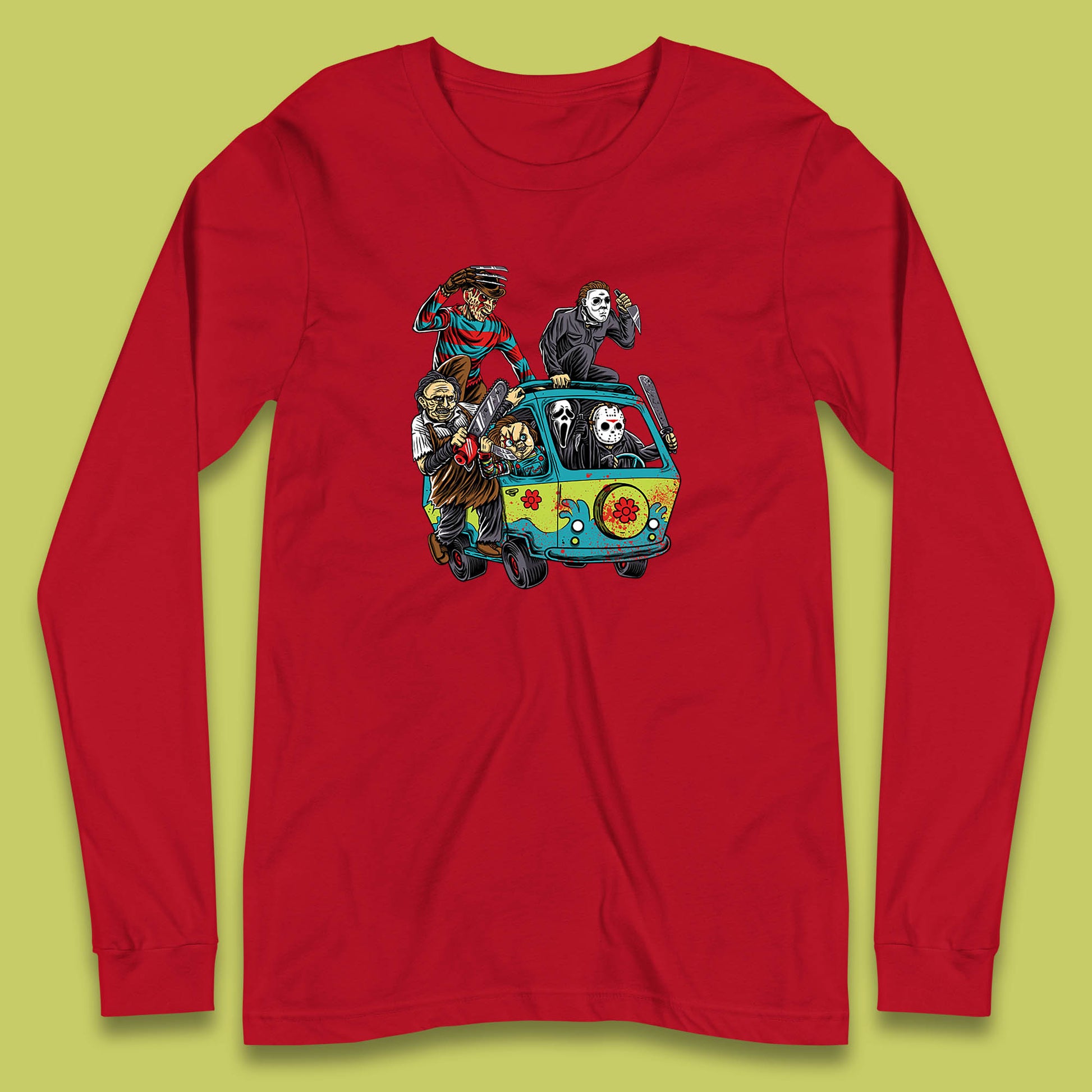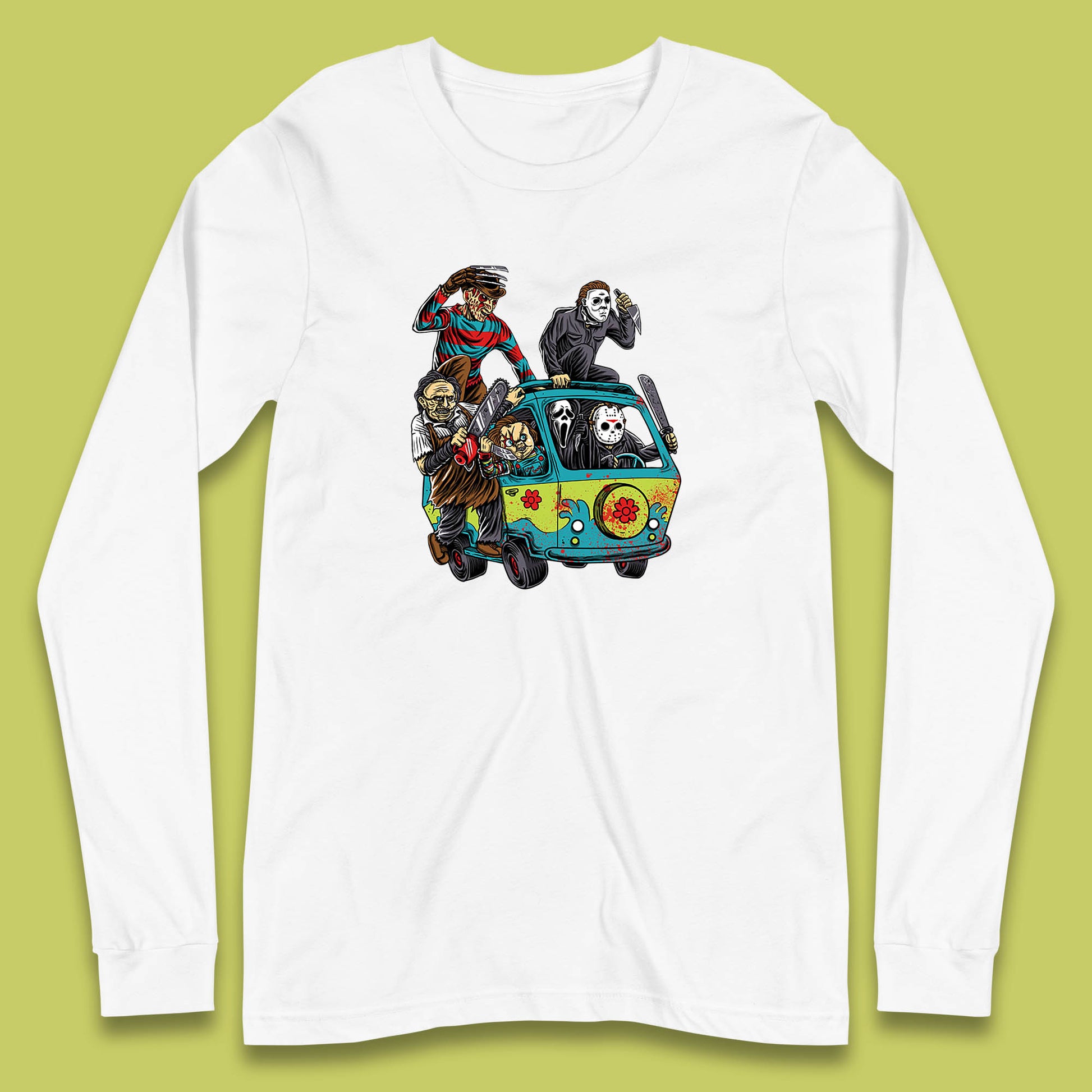 Halloween Scooby Doo Friends Van Horror Movie Villians Characters Mystery Machine Long Sleeve T Shirt