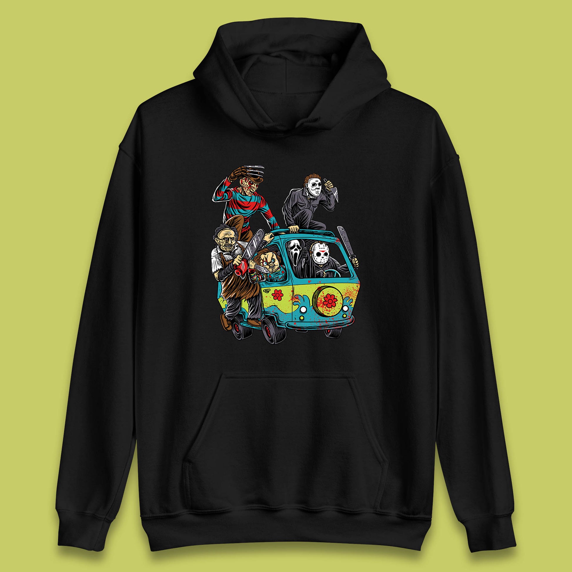 Halloween Scooby Doo Friends Van Horror Movie Villians Characters Mystery Machine Unisex Hoodie