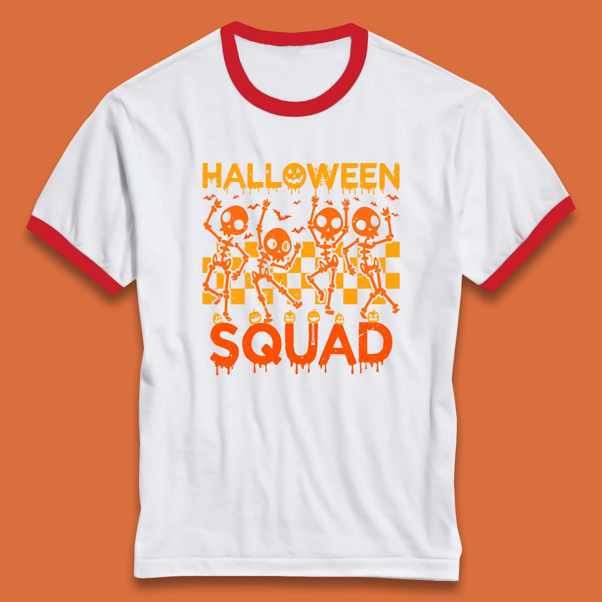 Halloween Squad Dancing Skeletons Squad Goals Dancing Halloween Skull Ringer T Shirt