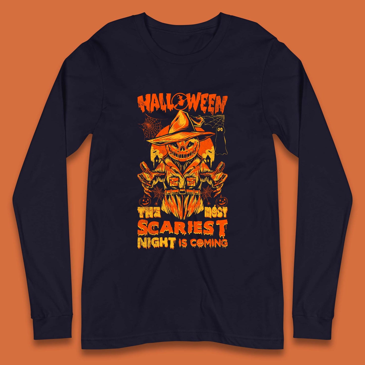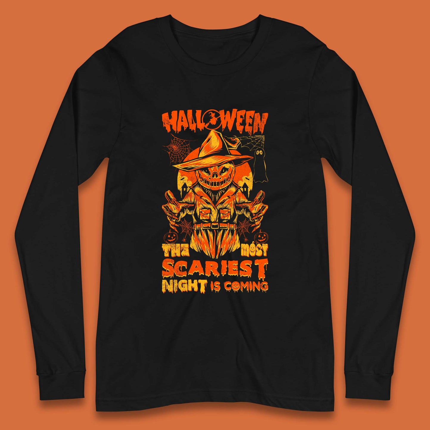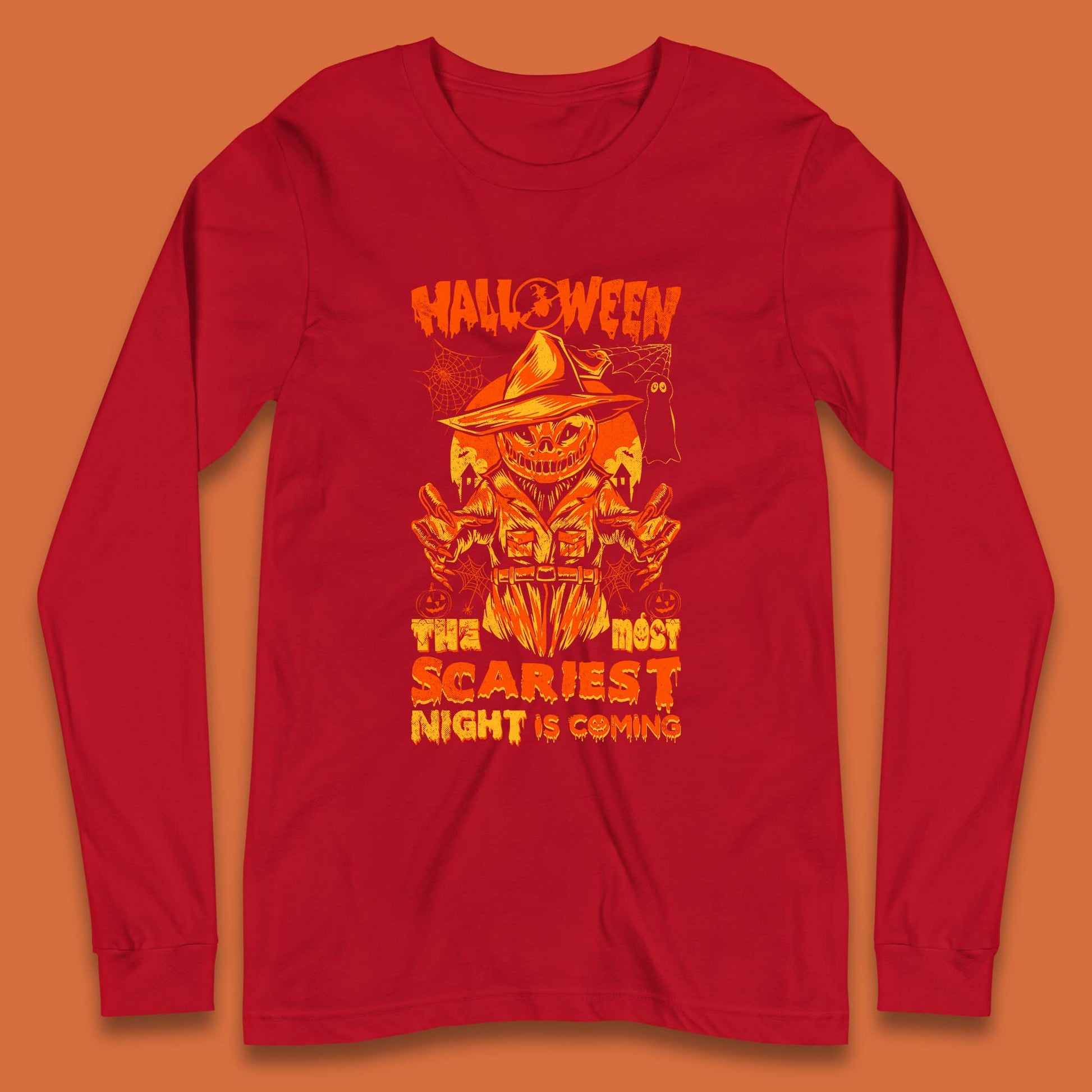 Halloween The Most Scariest Night Is Coming Halloween Scarecrow Jack O Lantern Scary Night Long Sleeve T Shirt