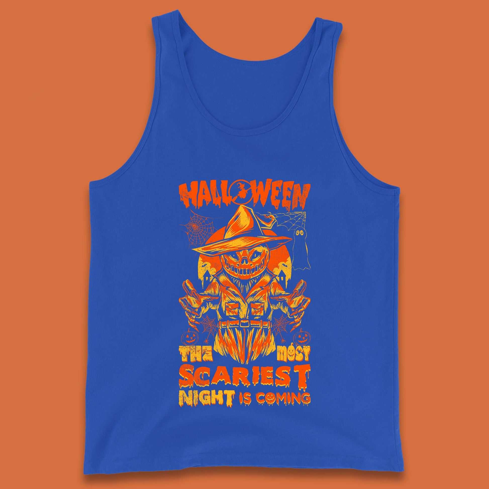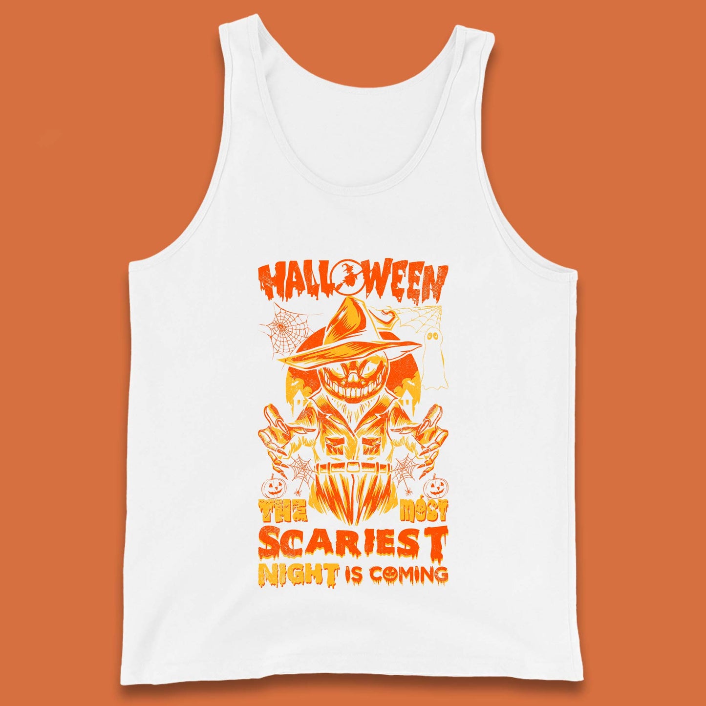 Halloween The Most Scariest Night Is Coming Halloween Scarecrow Jack O Lantern Scary Night Tank Top