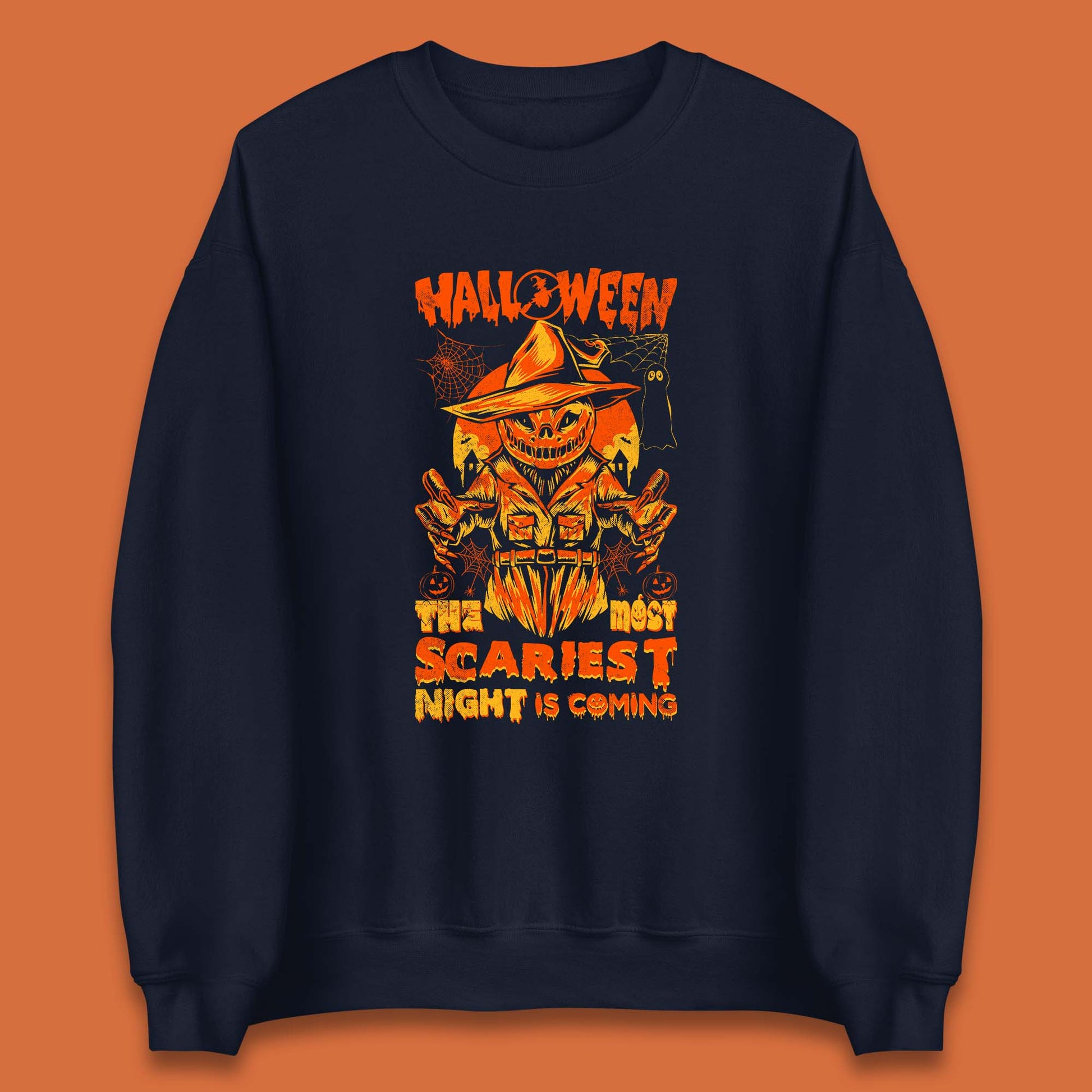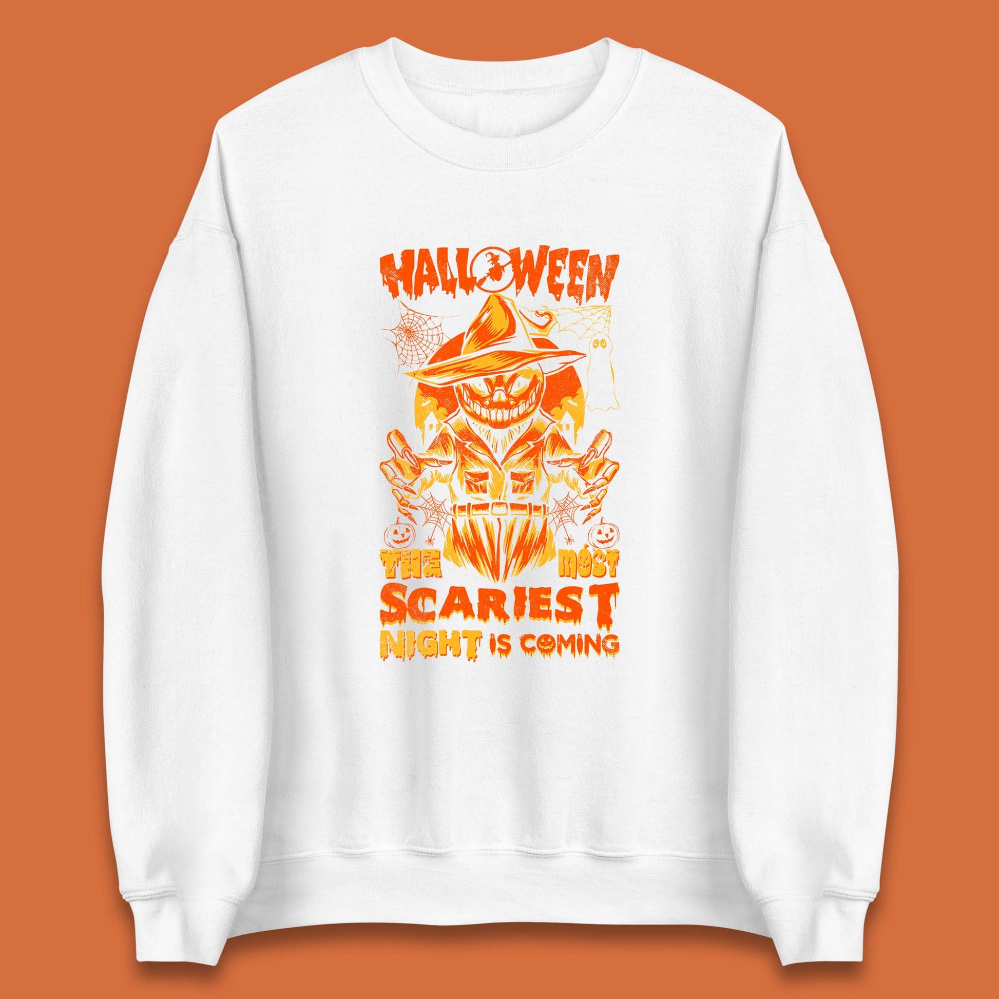 Halloween The Most Scariest Night Is Coming Halloween Scarecrow Jack O Lantern Scary Night Unisex Sweatshirt