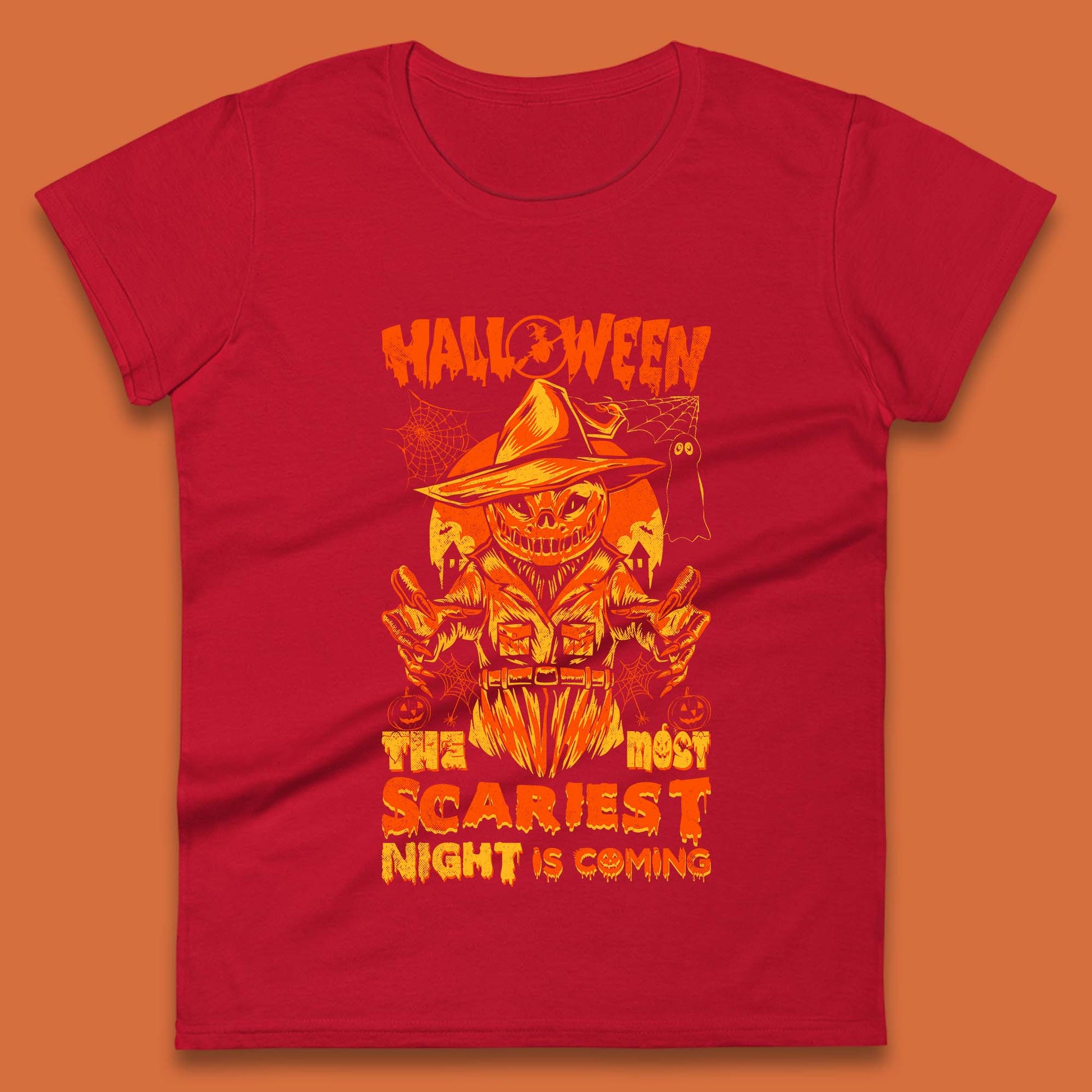 Halloween The Most Scariest Night Is Coming Halloween Scarecrow Jack O Lantern Scary Night Womens Tee Top