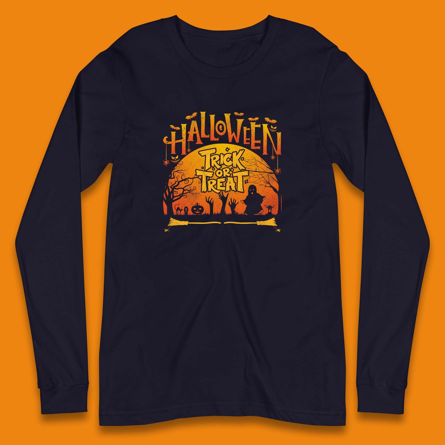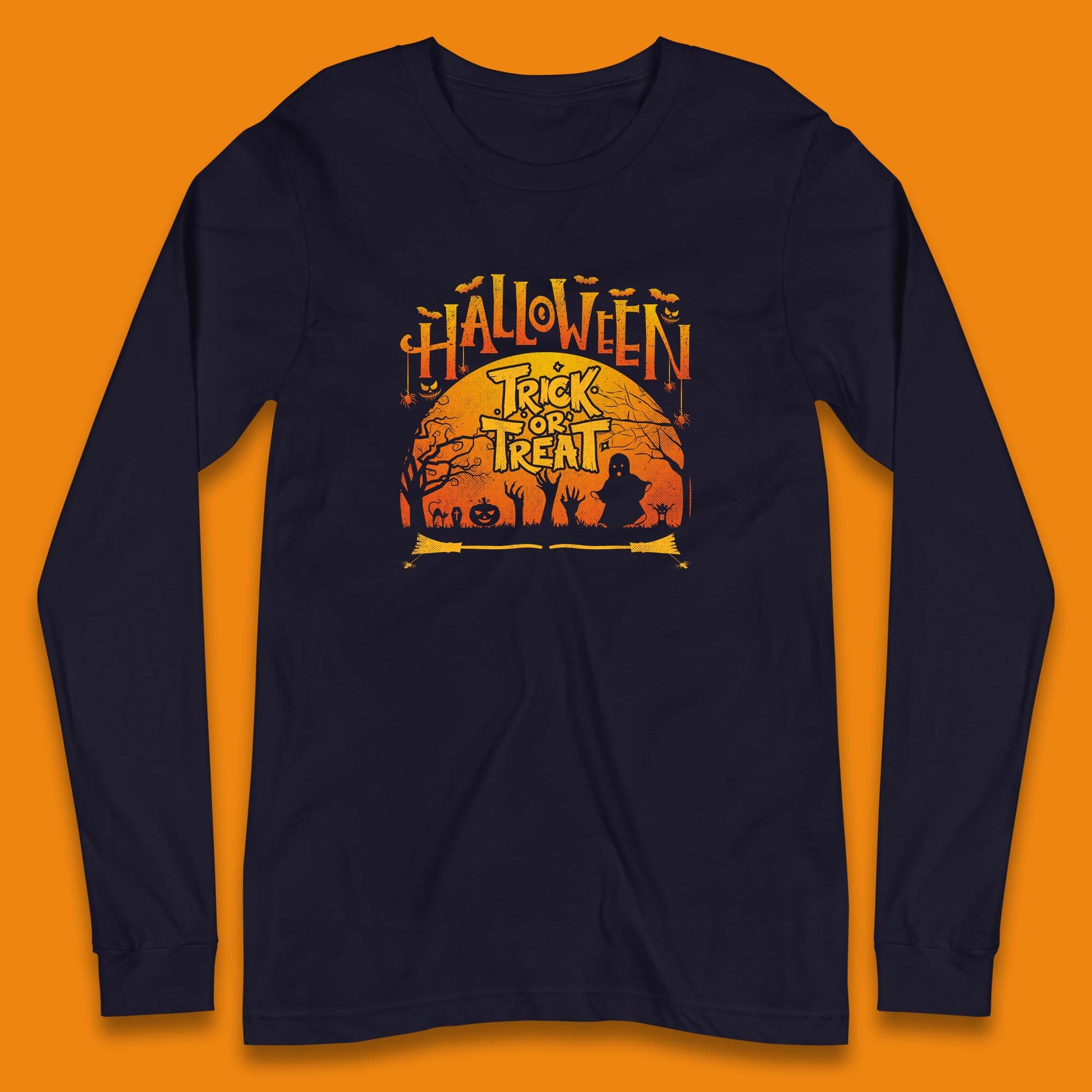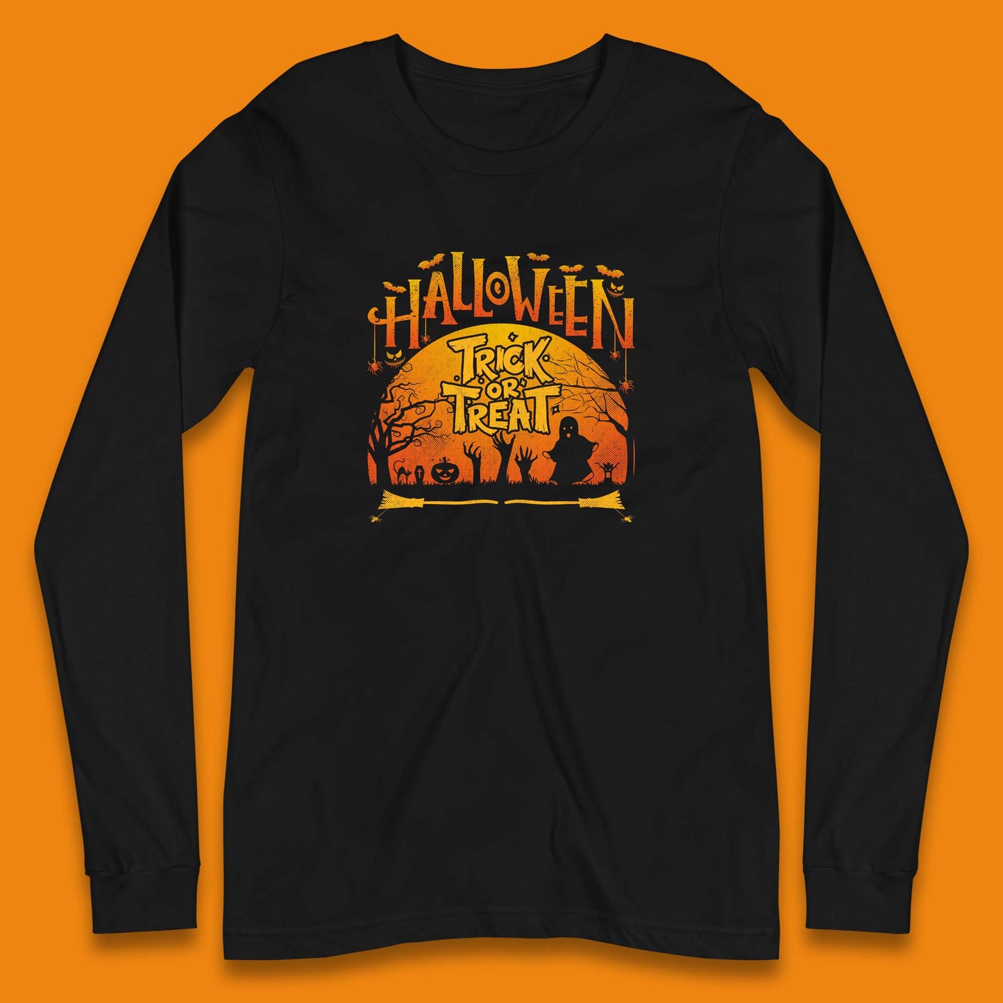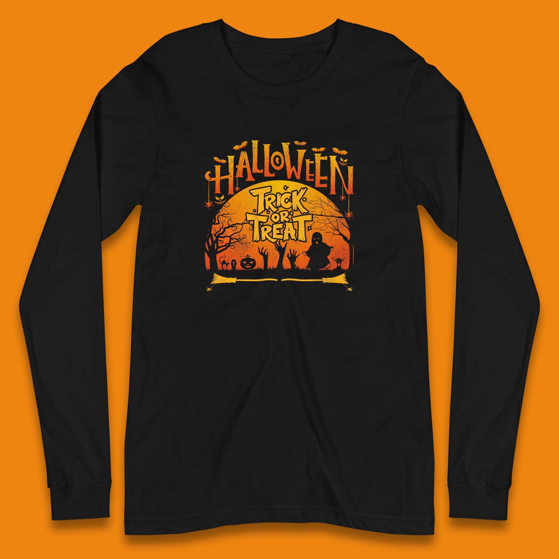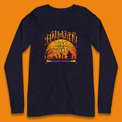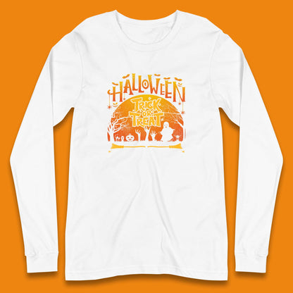 Halloween Trick Or Treat Horror Boo Ghost Creepy Zombie Hands Out Of Graveyard Long Sleeve T Shirt