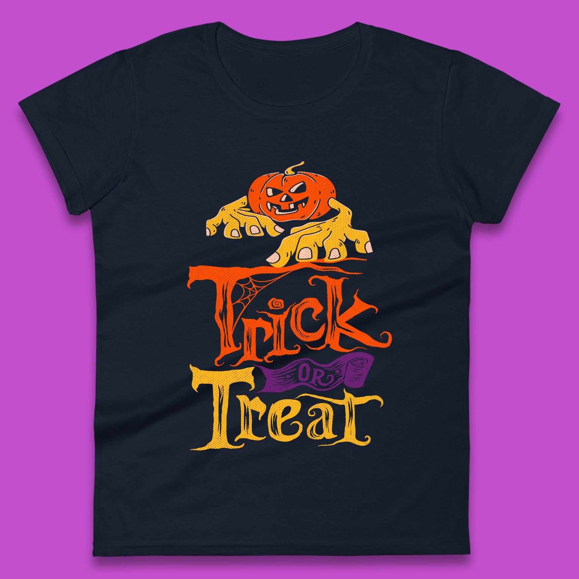 Halloween Trick Or Treat Horror Scary Evil Pumpkin With Zombie Hands Womens Tee Top