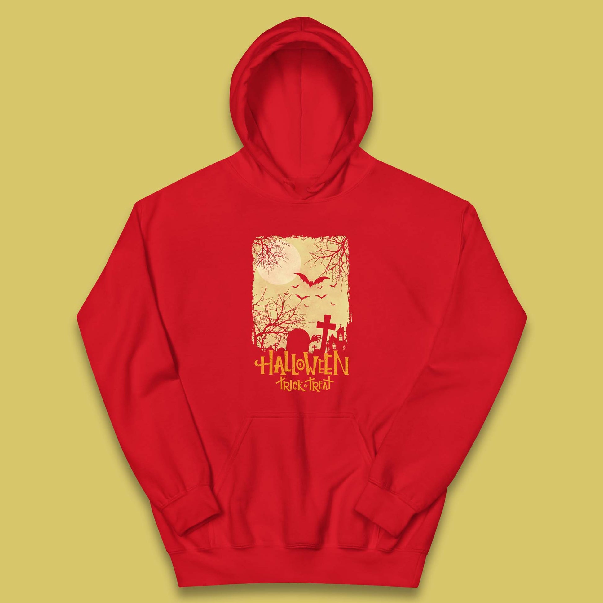 Halloween Trick Or Treat Horror Scary Graveyards Flying Bats Full Moon Kids Hoodie
