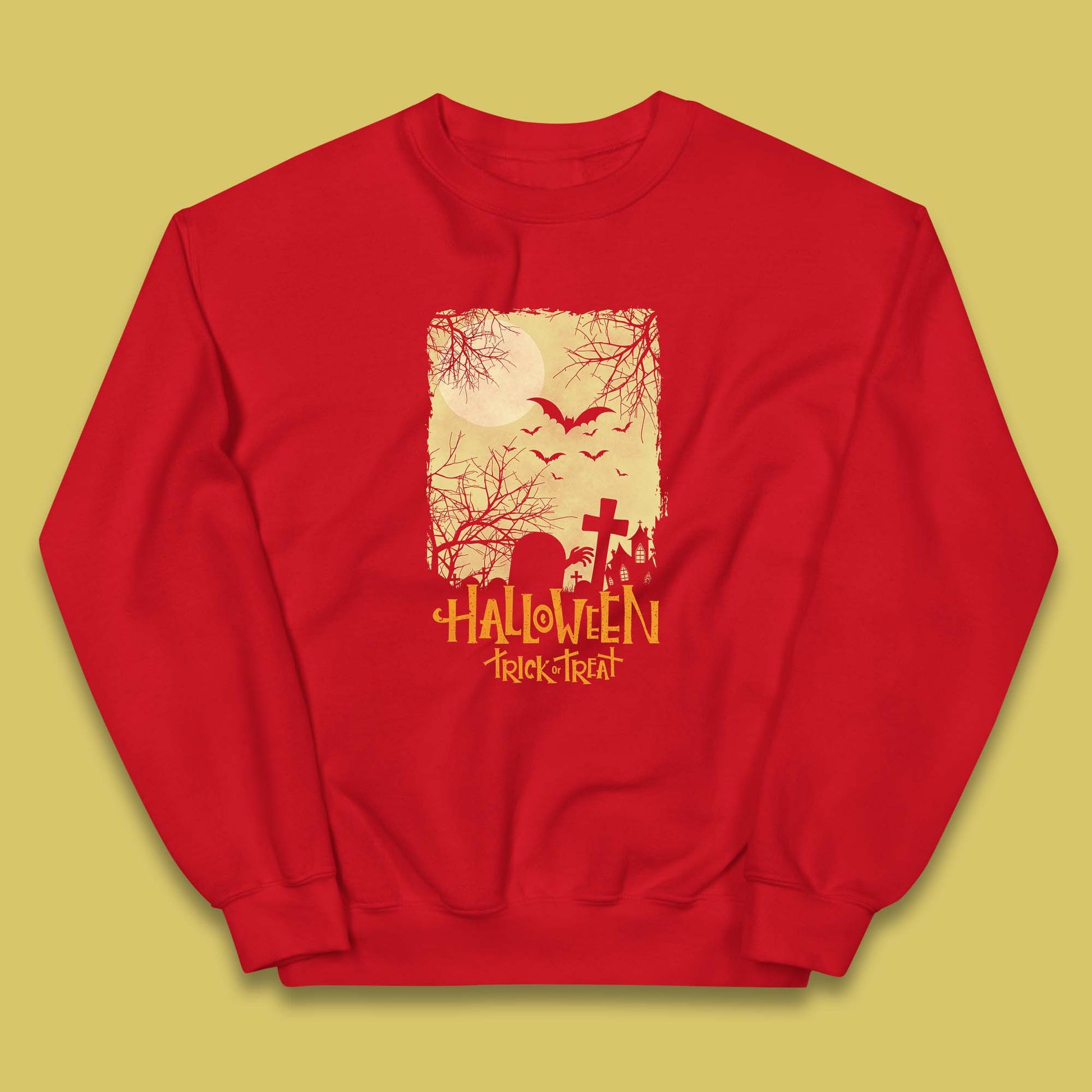Halloween Trick Or Treat Horror Scary Graveyards Flying Bats Full Moon Kids Jumper