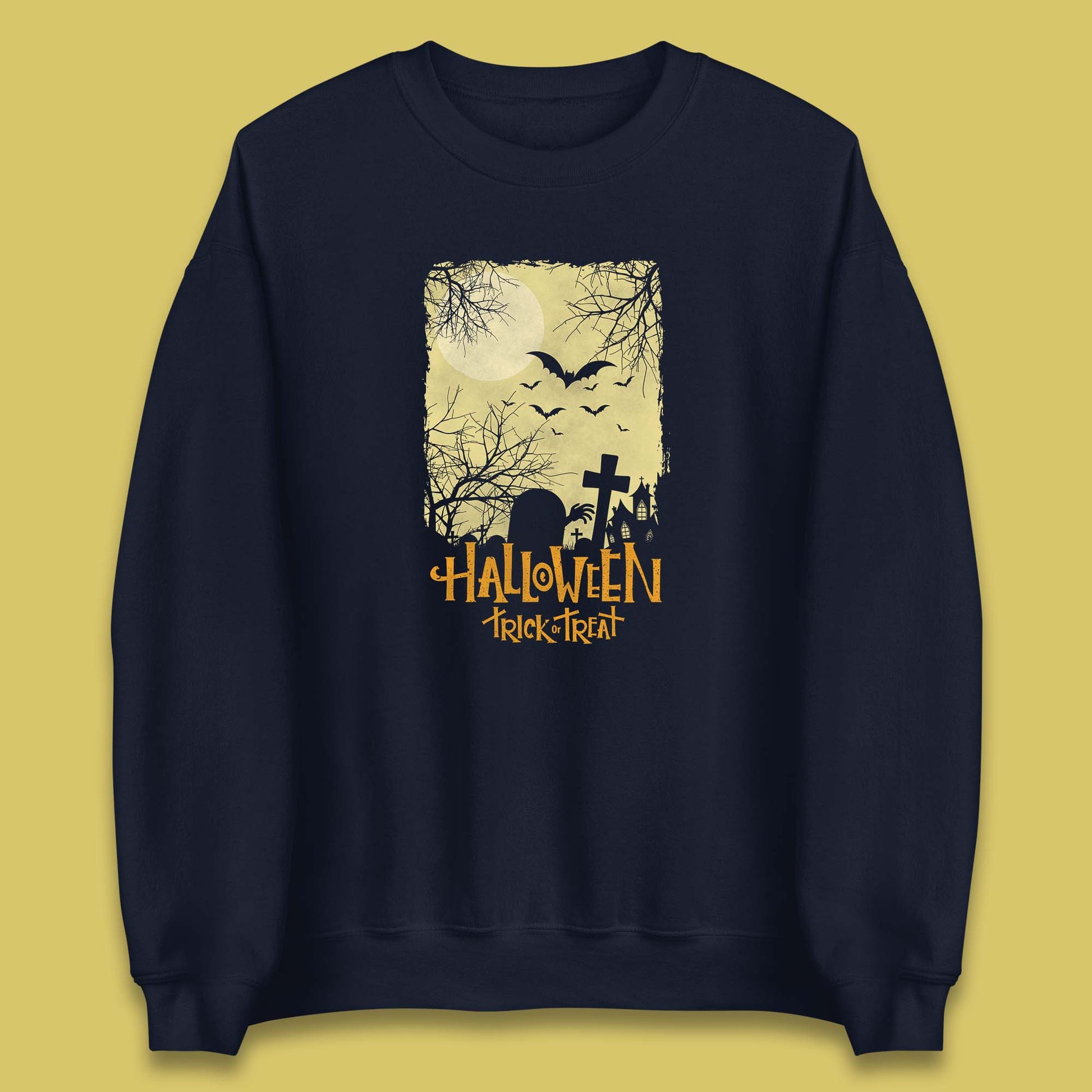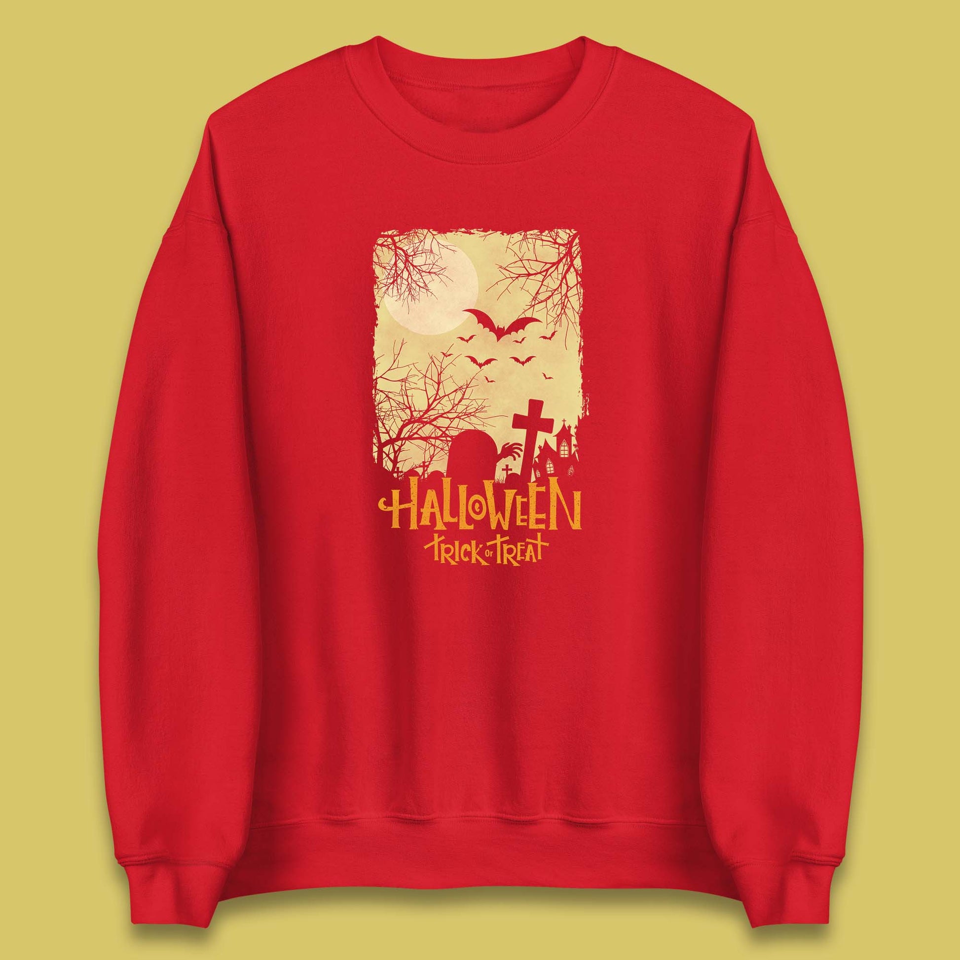 Halloween Trick Or Treat Horror Scary Graveyards Flying Bats Full Moon Unisex Sweatshirt