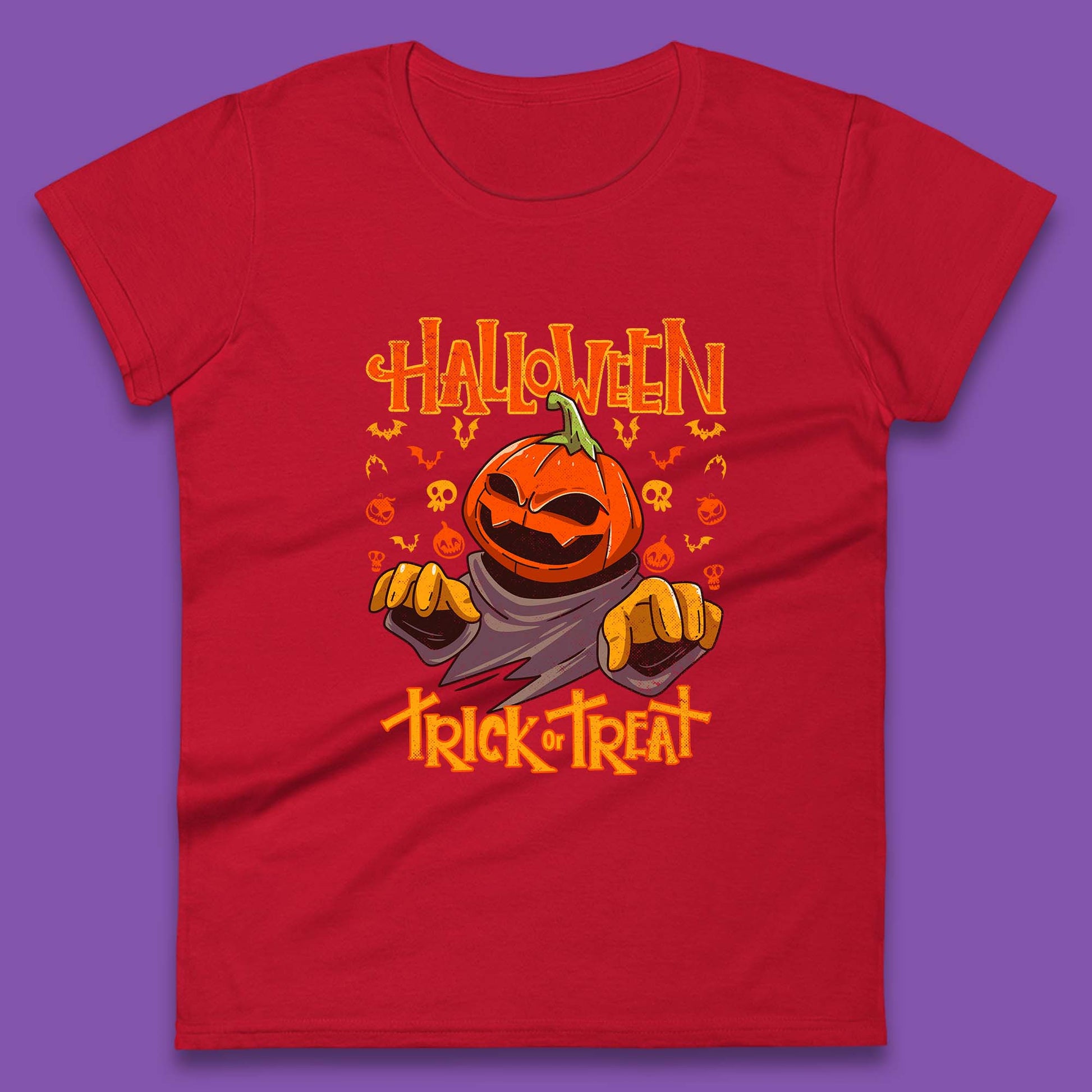 Halloween Trick Or Treat Pumpkin Character Halloween Scary Evil Pumpkin Womens Tee Top
