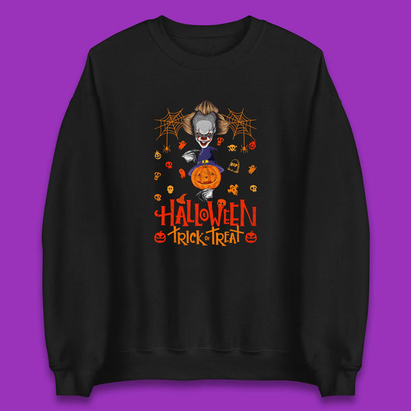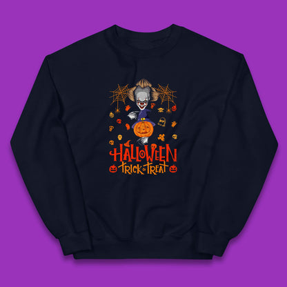 Halloween Trick Or Treat Witch Hat Pumpkin IT Pennywise Clown Horror Scary Movie Fictional Character Kids Jumper
