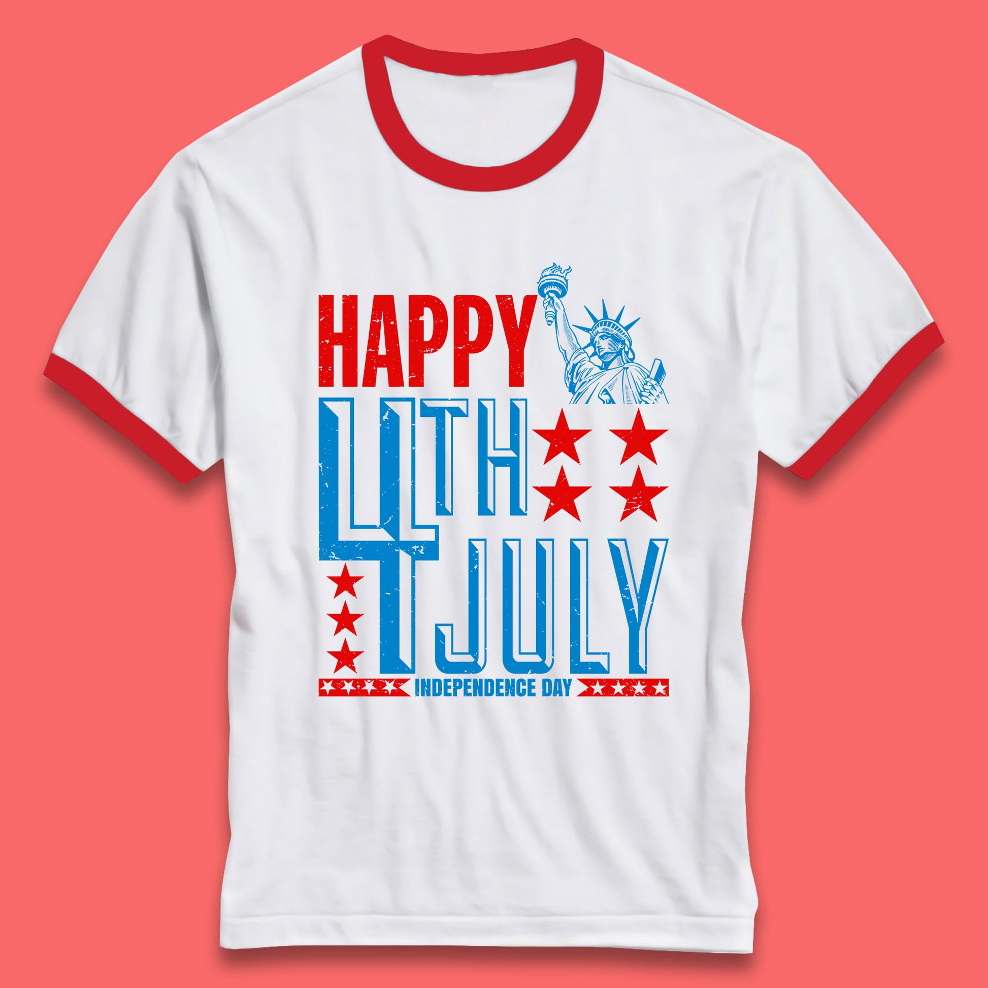 Happy 4th Of July Independence Day Statue Of Liberty Patriotic Celebration Ringer T Shirt