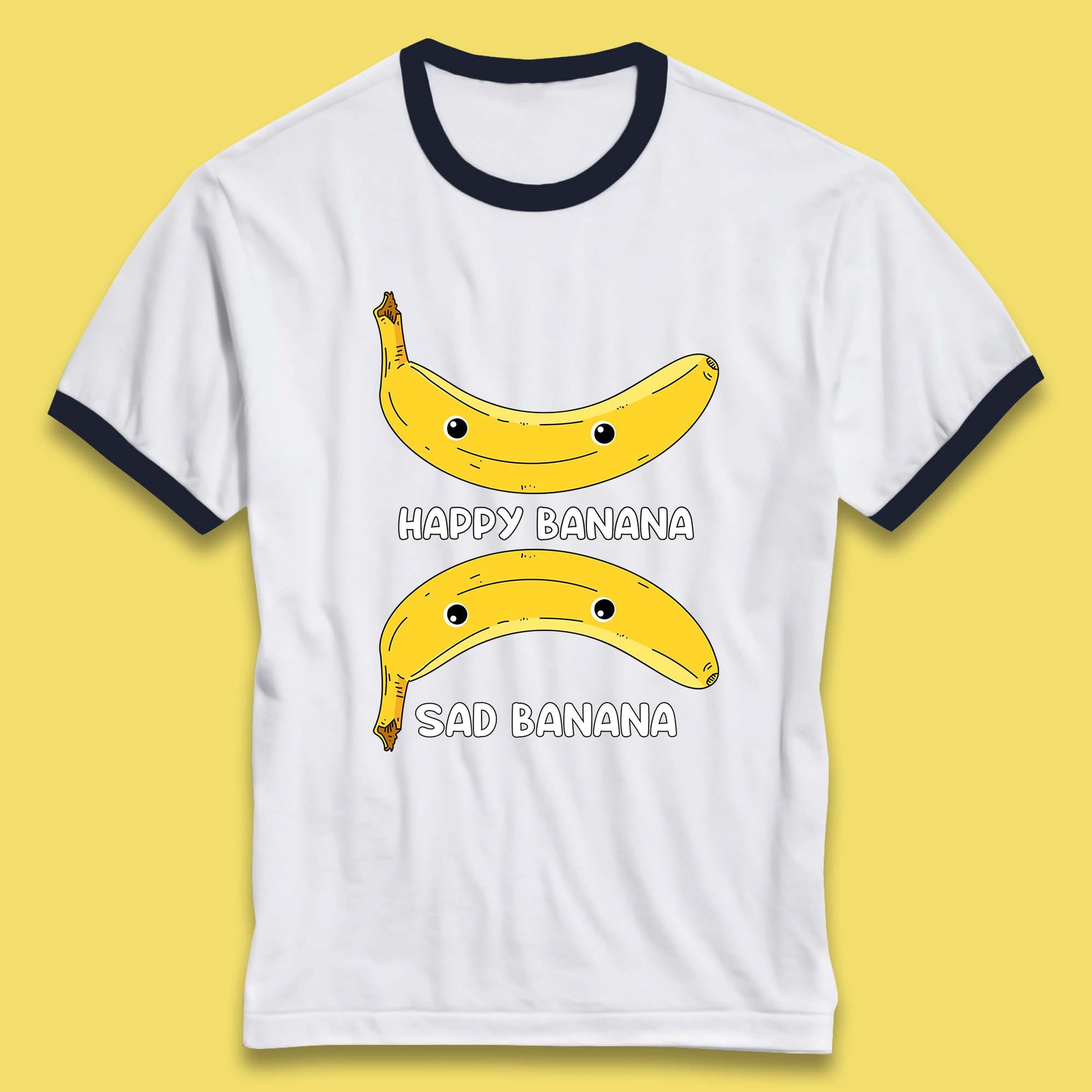 Happy Banana Sad Banana Funny Meme Pun Joke Smiling Face Ringer T Shirt