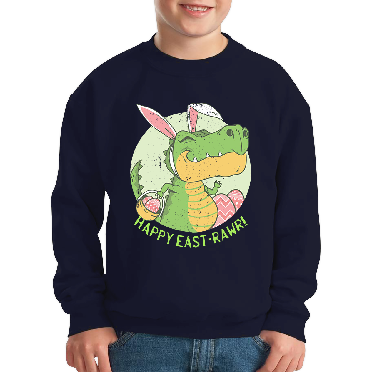 Happy Eastrawr Easter Bunny Dinosaur T-Rex RAWR Easter Egg Rabbit Funny Easter Day Kids Jumper