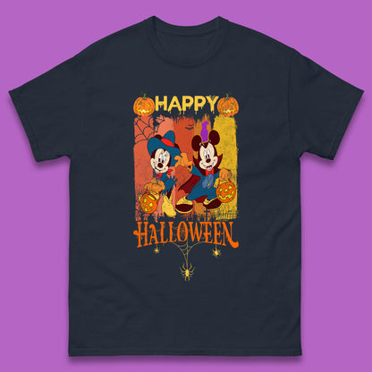 Happy Halloween Disney Witch Mickey Mouse Minnie Mouse Horror Scary Disneyland Trip Mens Tee Top