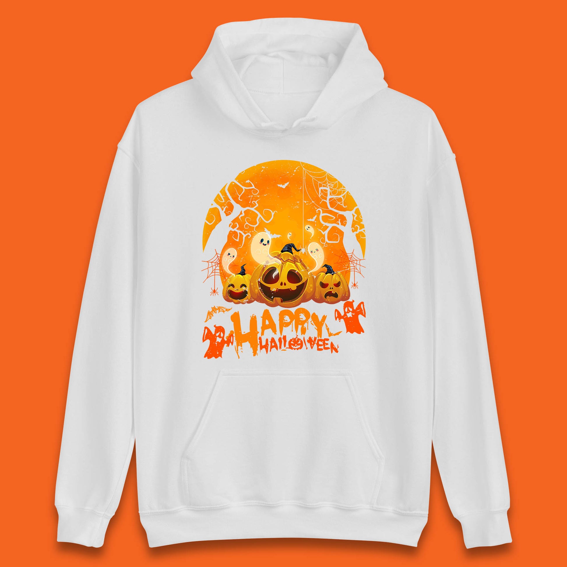Happy Halloween Jack O Lantern Pumpkins Scary Boo Ghost Haunted Trees Unisex Hoodie