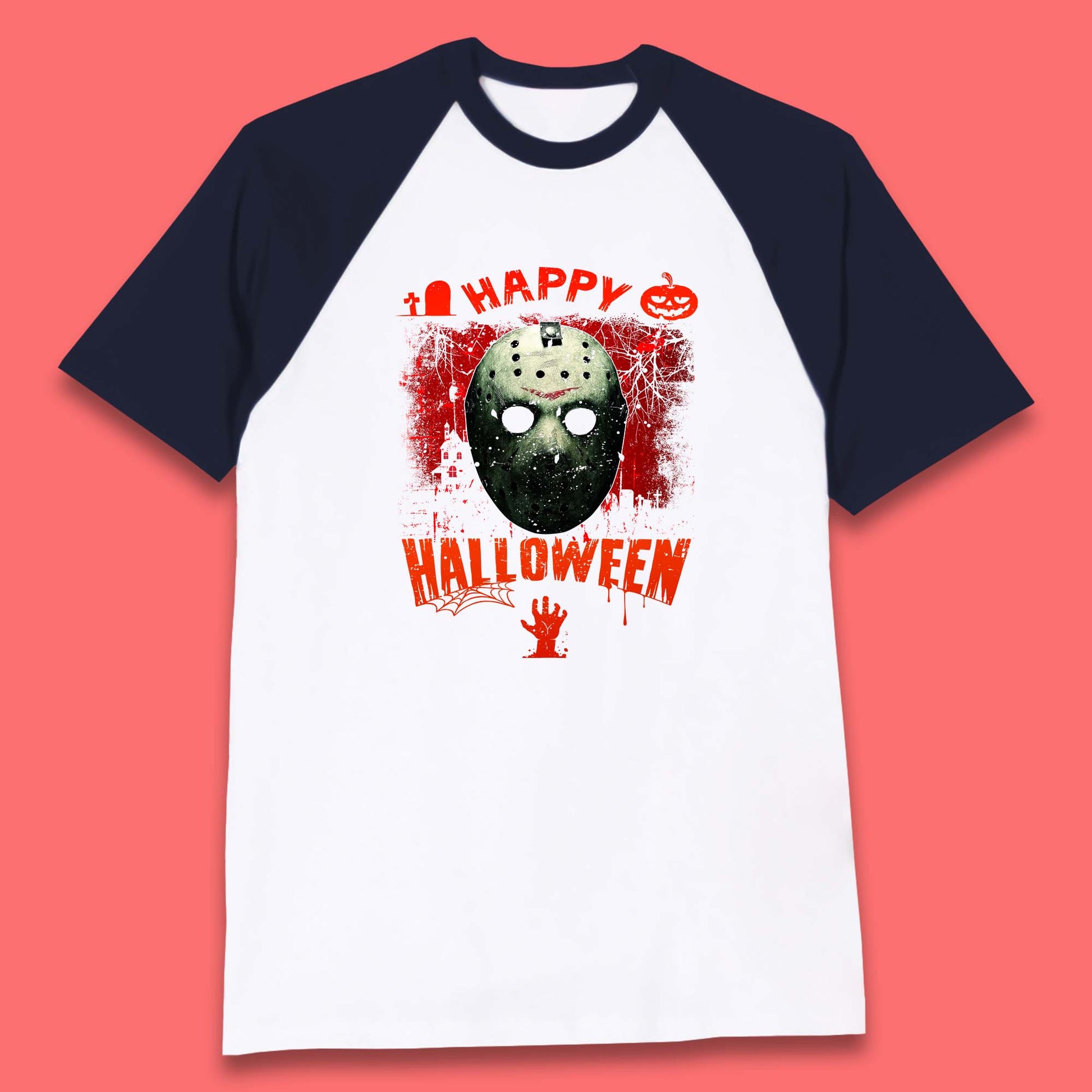 Happy Halloween Jason Voorhees Face Mask Halloween Friday The 13th Horror Movie Baseball T Shirt