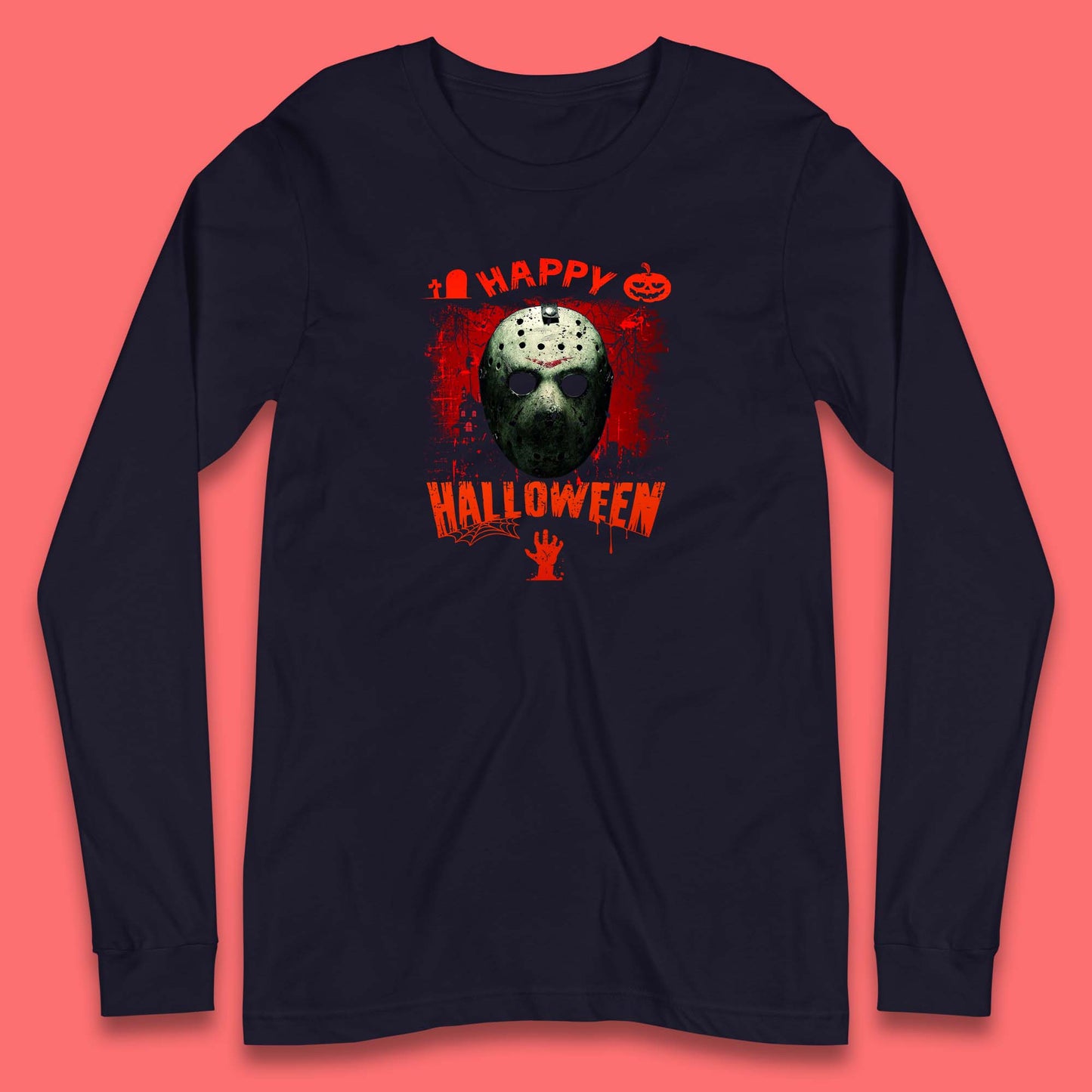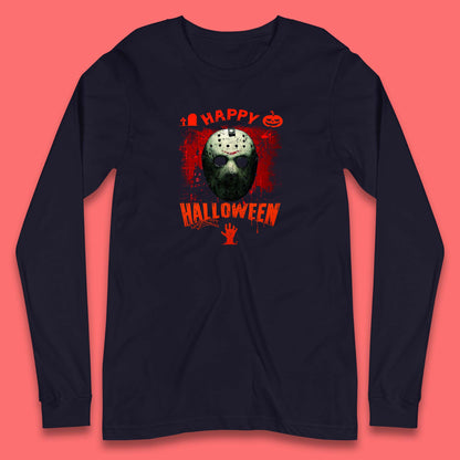 Happy Halloween Jason Voorhees Face Mask Halloween Friday The 13th Horror Movie Long Sleeve T Shirt