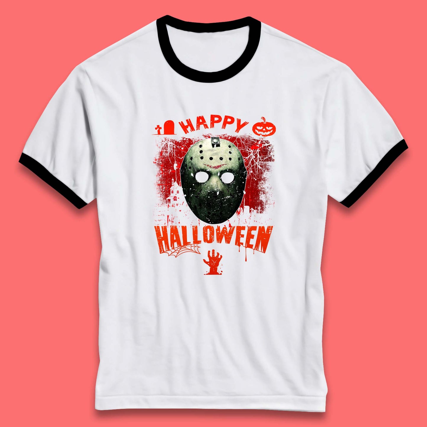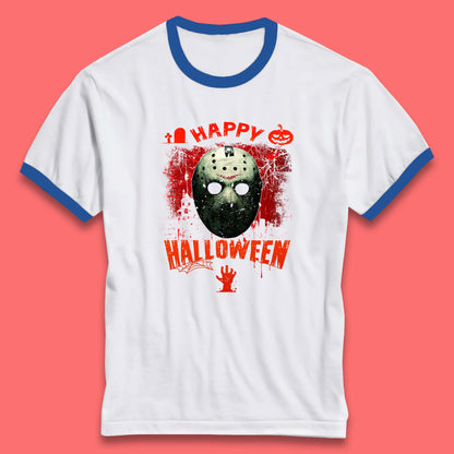 Happy Halloween Jason Voorhees Face Mask Halloween Friday The 13th Horror Movie Ringer T Shirt