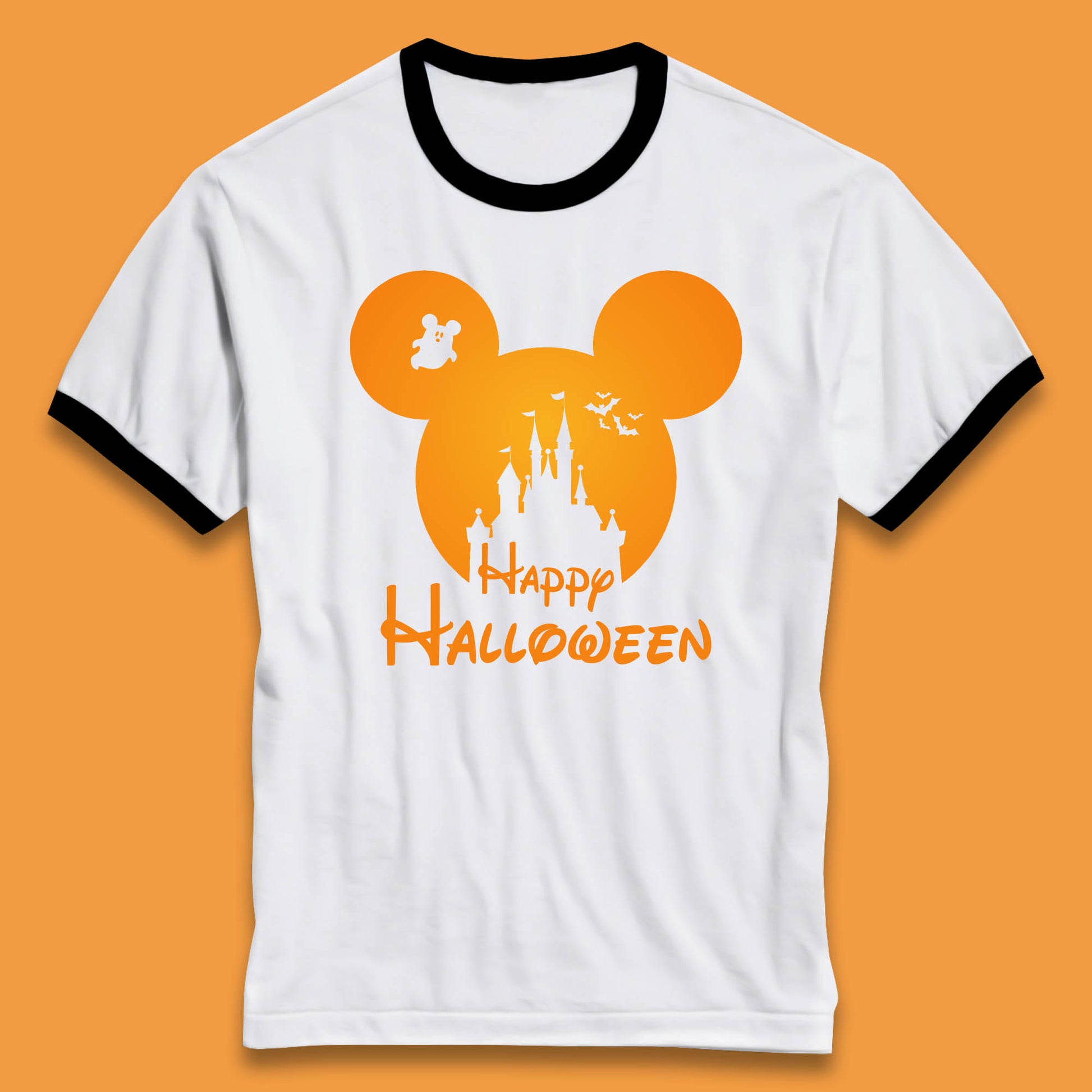 Happy Halloween Mickey Mouse Disney Castle Halloween Scary Boo Flying Bats Ringer T Shirt