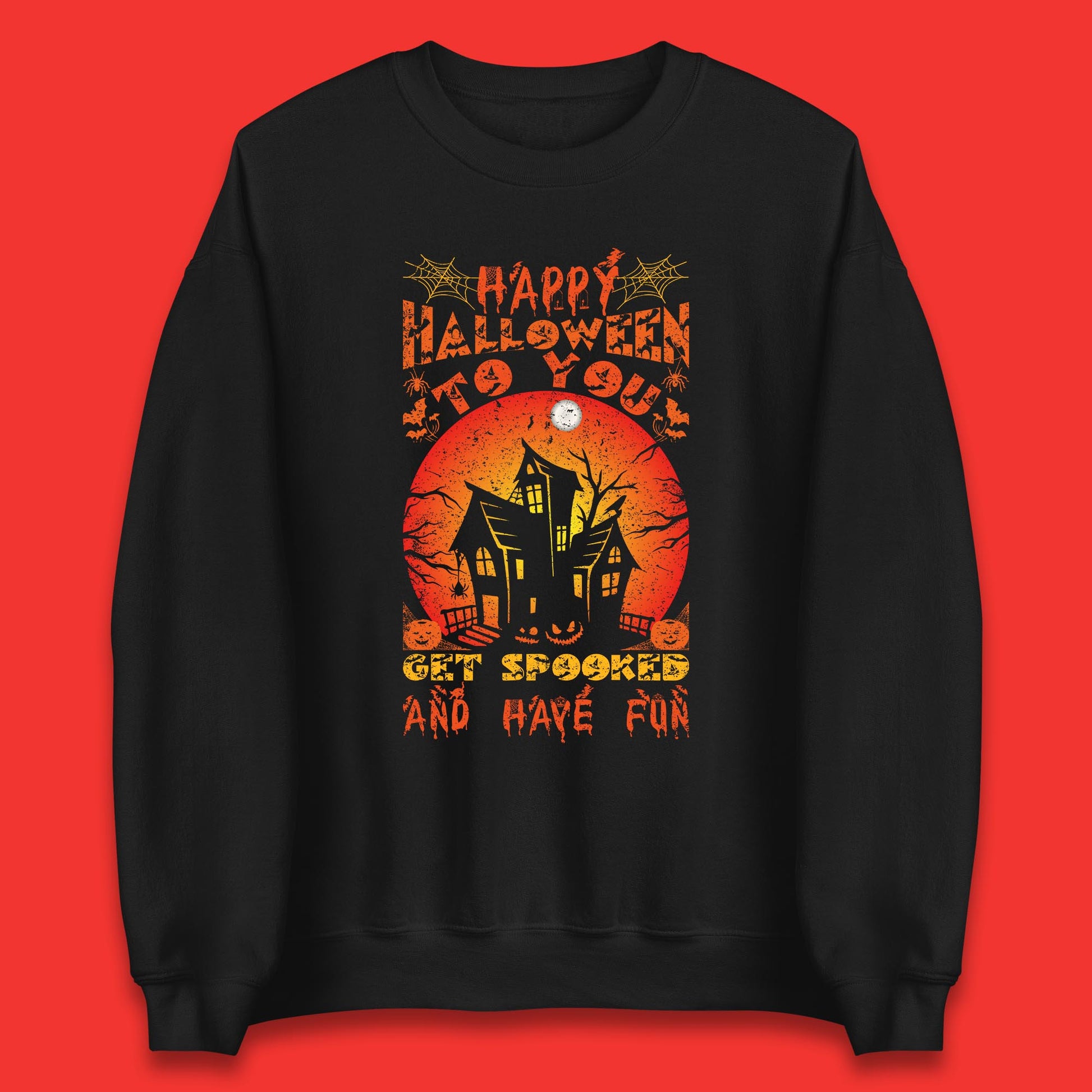 Happy Halloween To You Get Spooked And Have Fun Halloween Horror Hunted House Unisex Sweatshirt