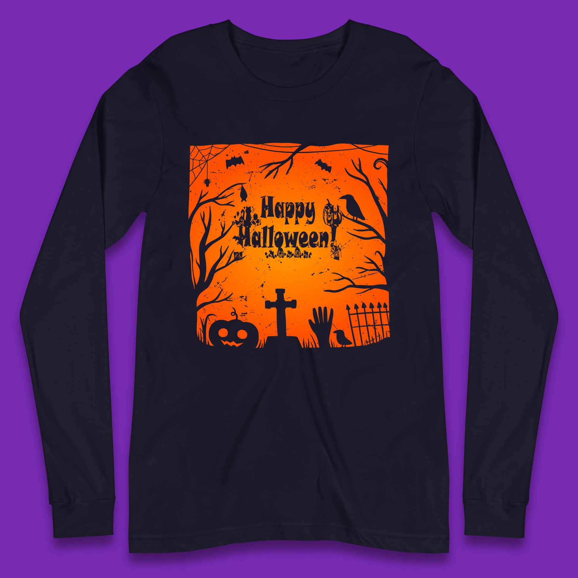 Happy Halloween Witch Hand Cross Sign Scary Pumpin Spooky Terrific Halloween Night Long Sleeve T Shirt