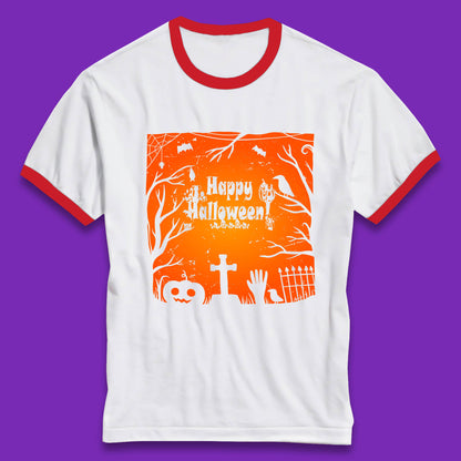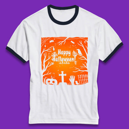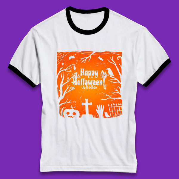 Happy Halloween Witch Hand Cross Sign Scary Pumpin Spooky Terrific Halloween Night Ringer T Shirt