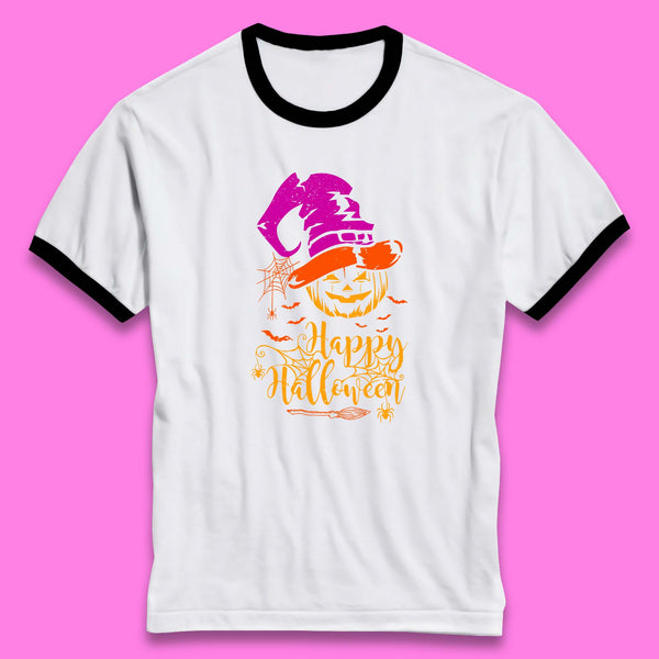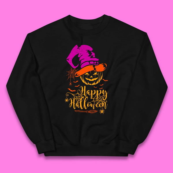 Happy Halloween Witch Hat Pumpkin Horror Scary Jack-o-lantern Flying Bats Kids T Shirt