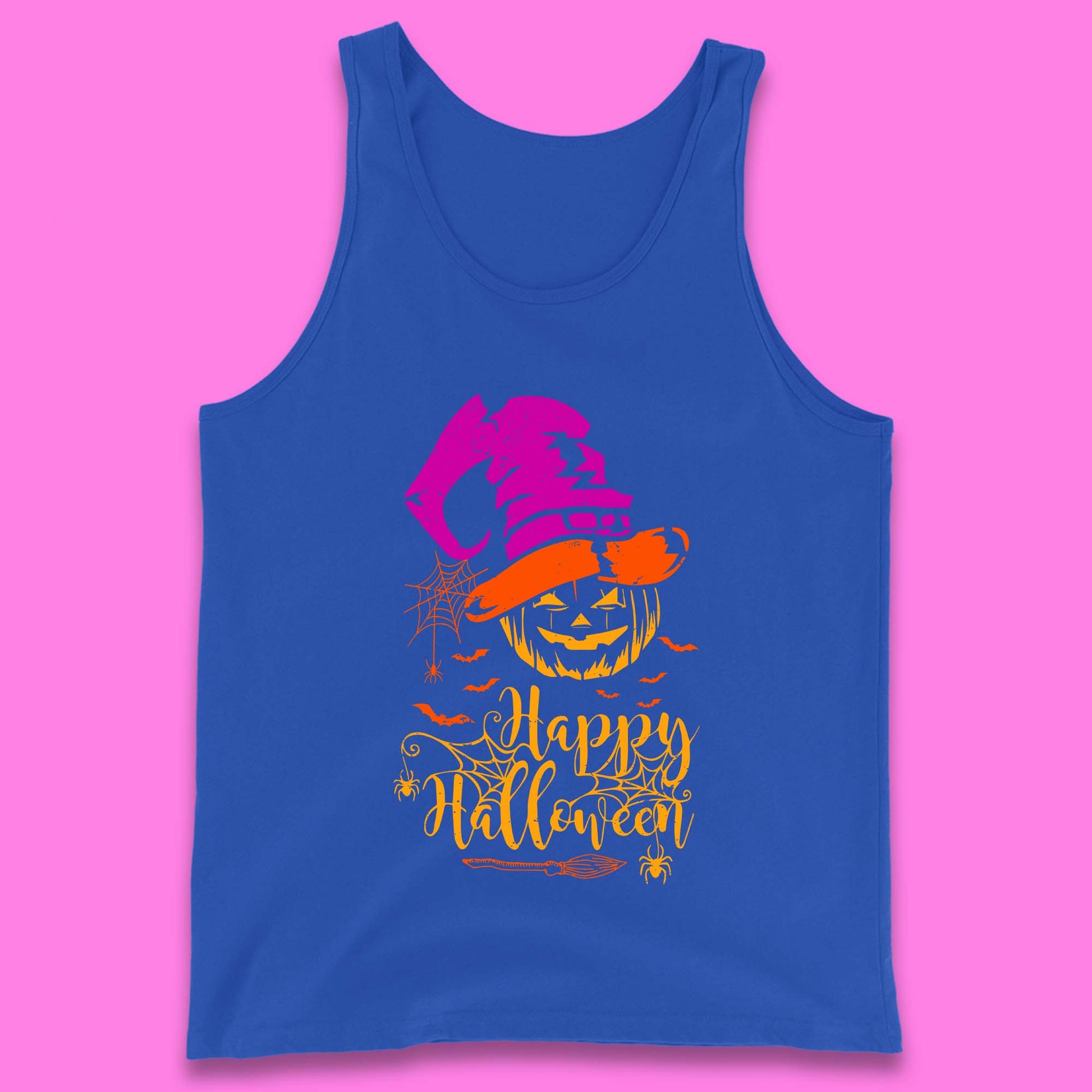 Happy Halloween Witch Hat Pumpkin Horror Scary Jack-o-lantern Flying Bats Tank Top