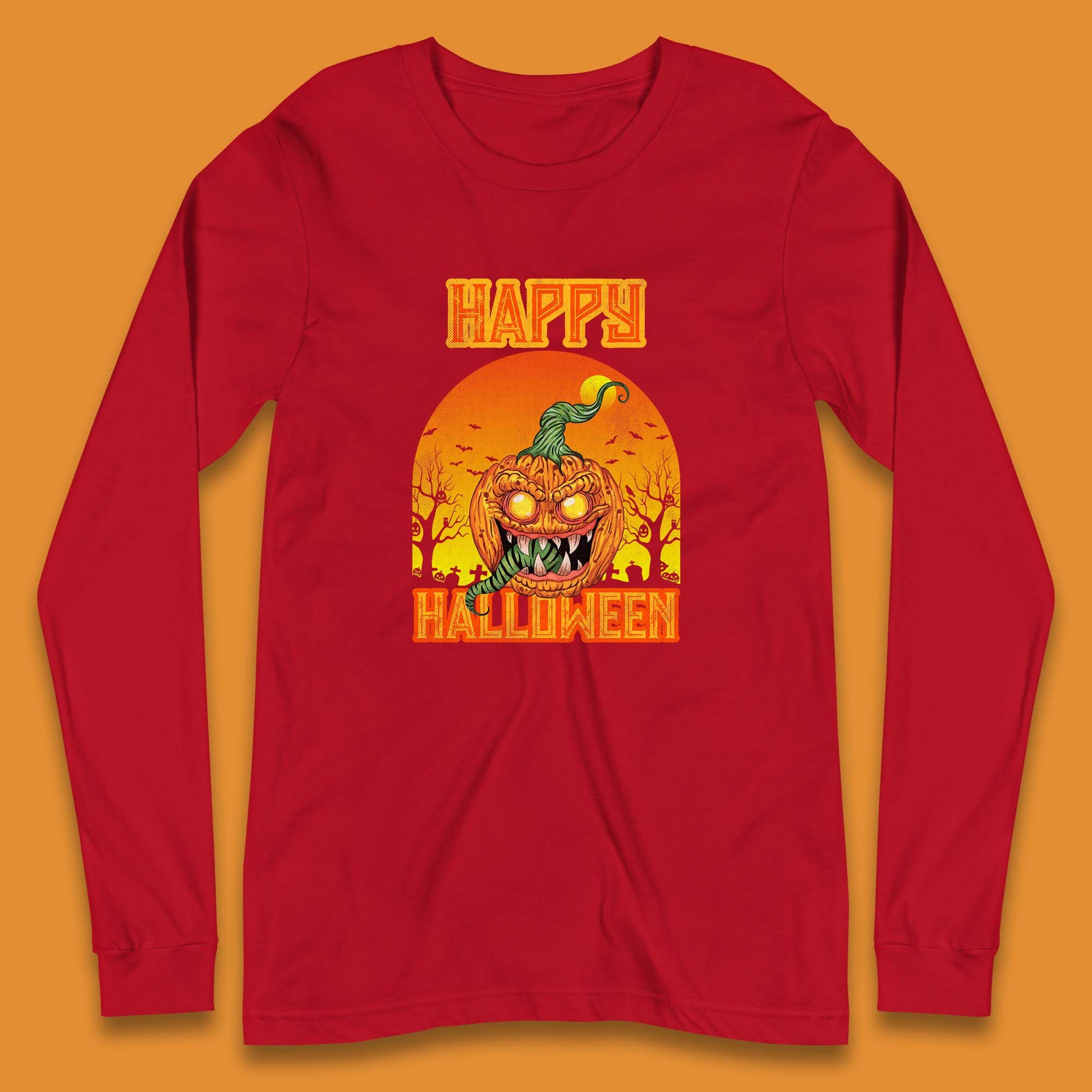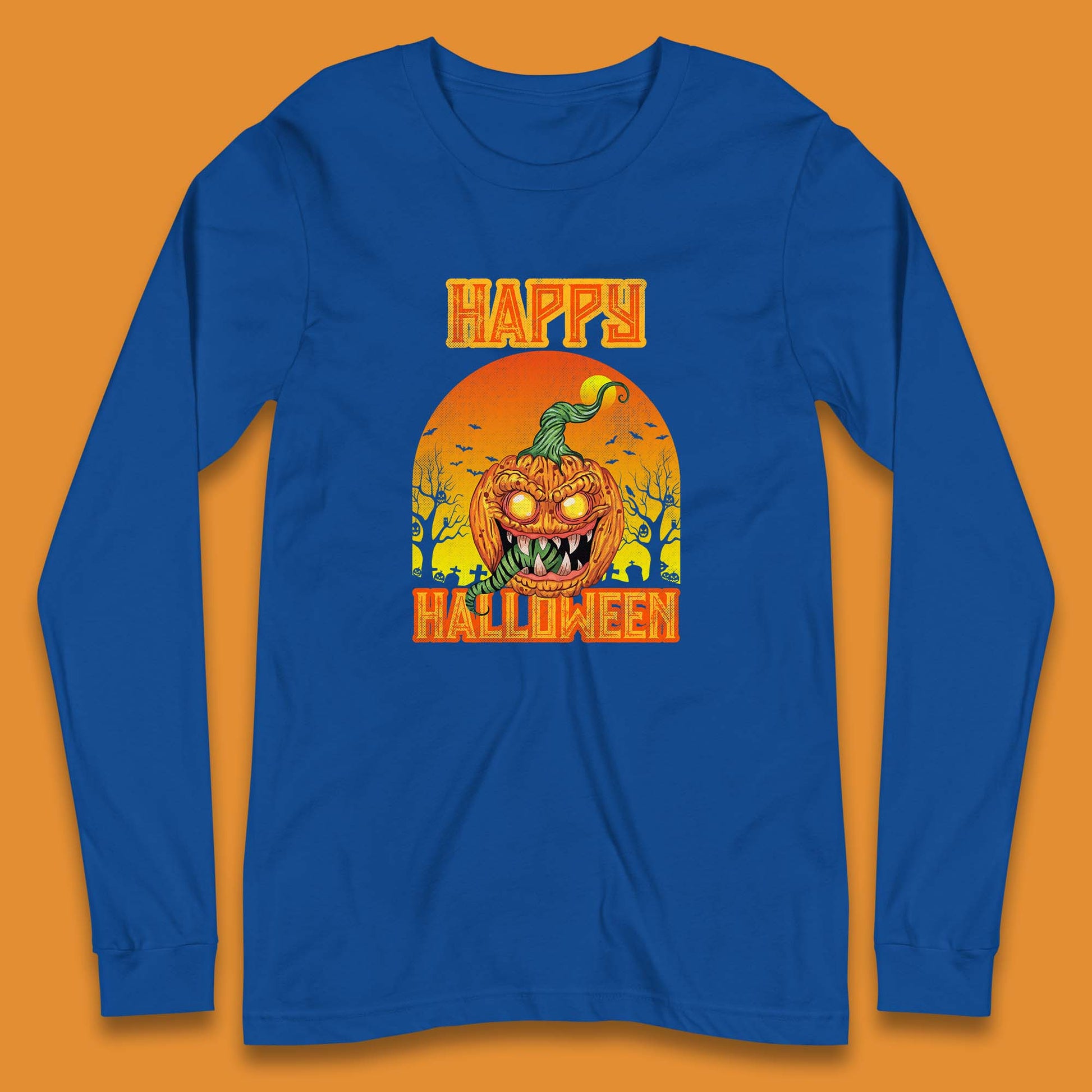 Happy Halloween Zombie Monster Pumpkin Jack-o-lantern Spooky Season Long Sleeve T Shirt