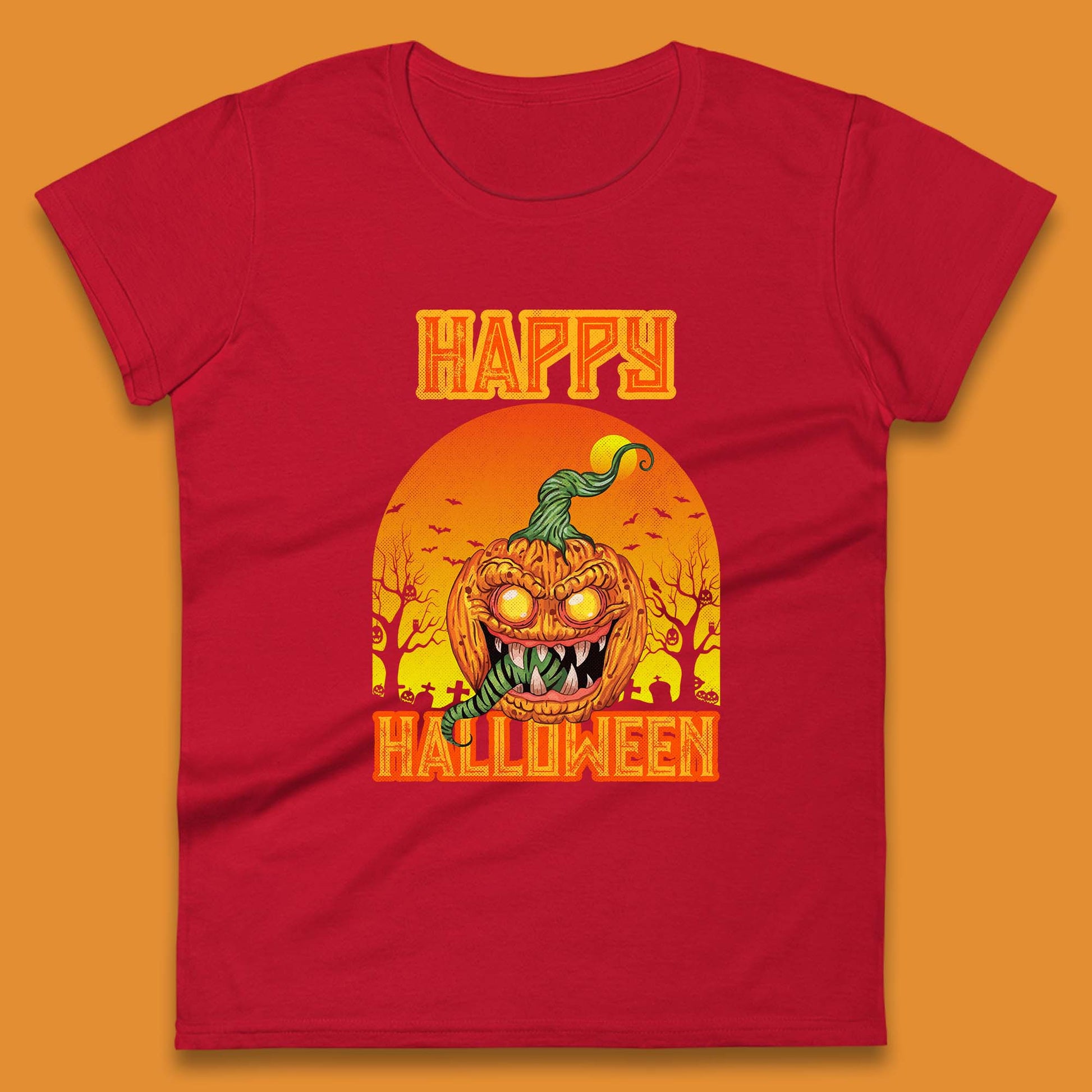 Happy Halloween Zombie Monster Pumpkin Jack-o-lantern Spooky Season Womens Tee Top