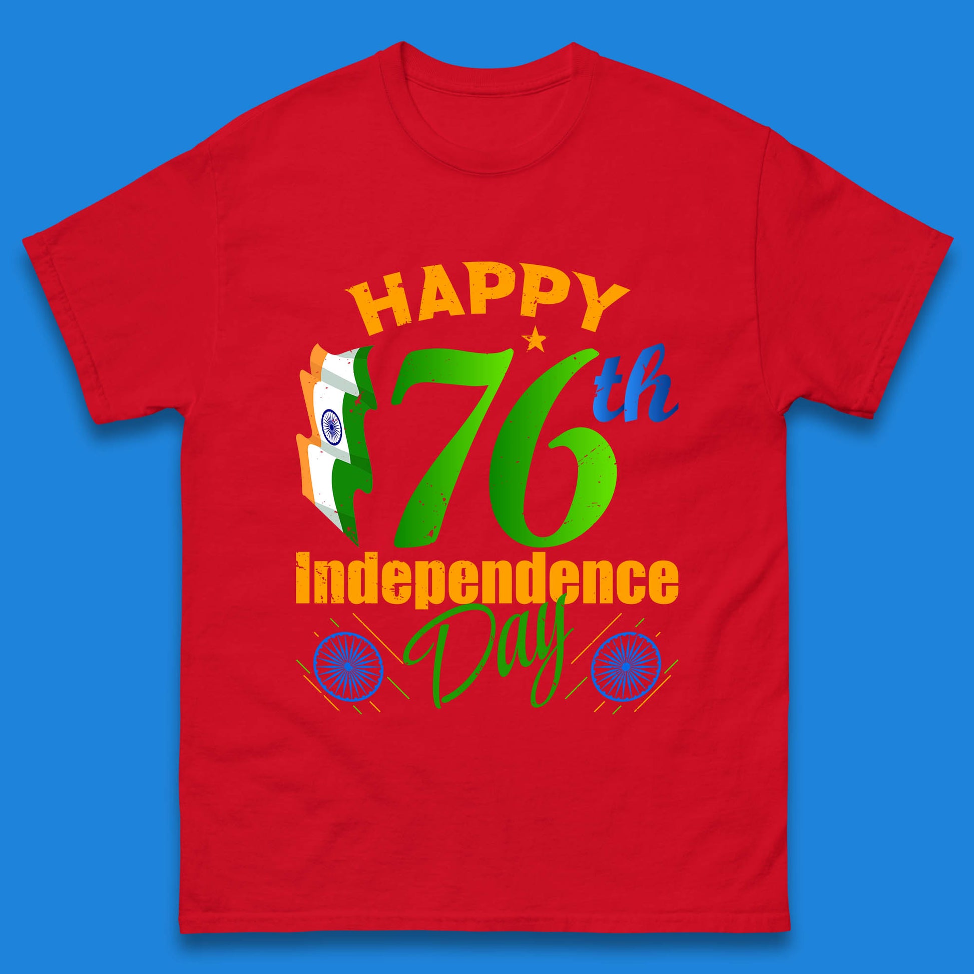 Happy India 76th Independence Day 15th August Patriotic Indian Flag Mens Tee Top