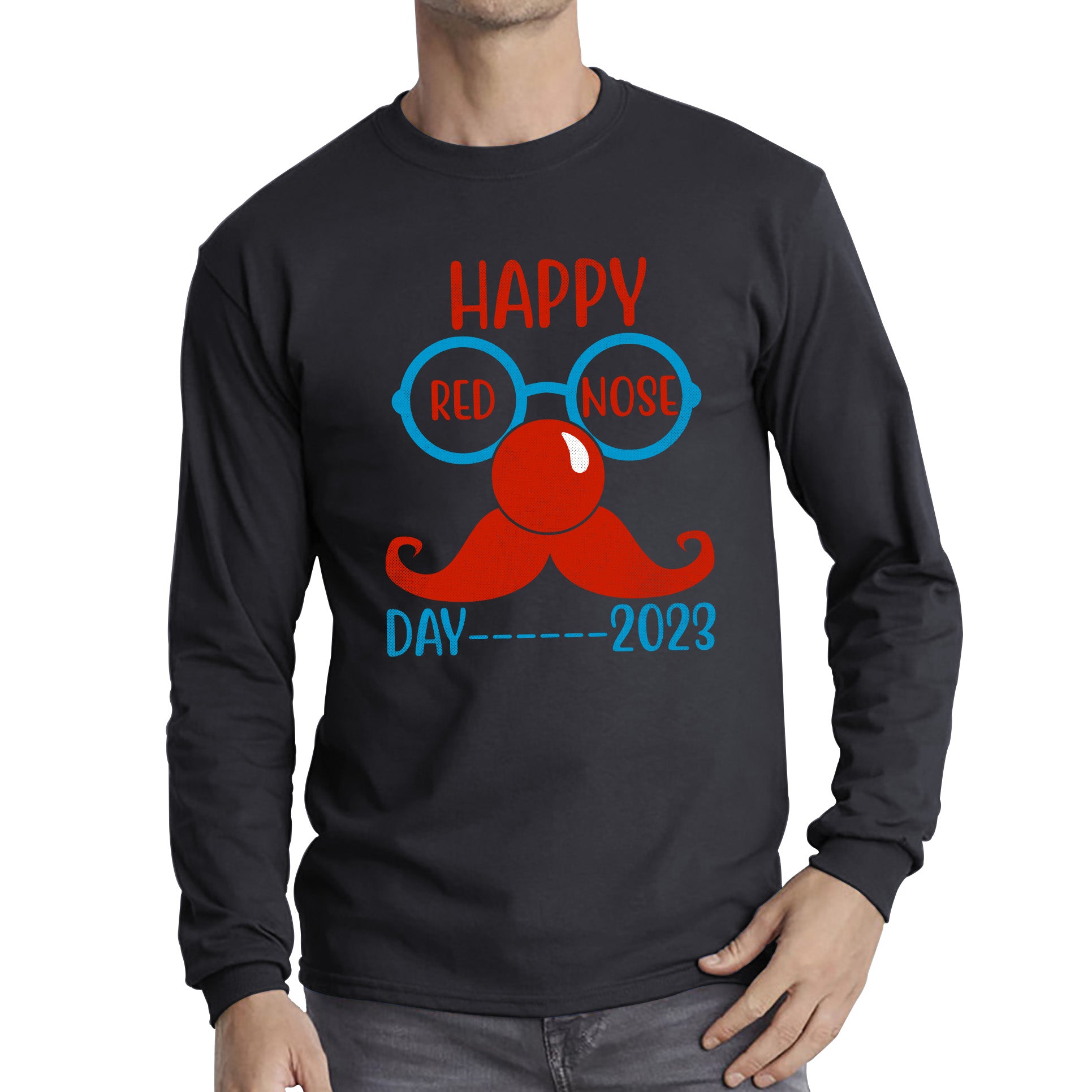 Happy Red Nose Day 2023 Glasses Moustache Child Poverty Awareness Party Wear Long Sleeve T Shirt