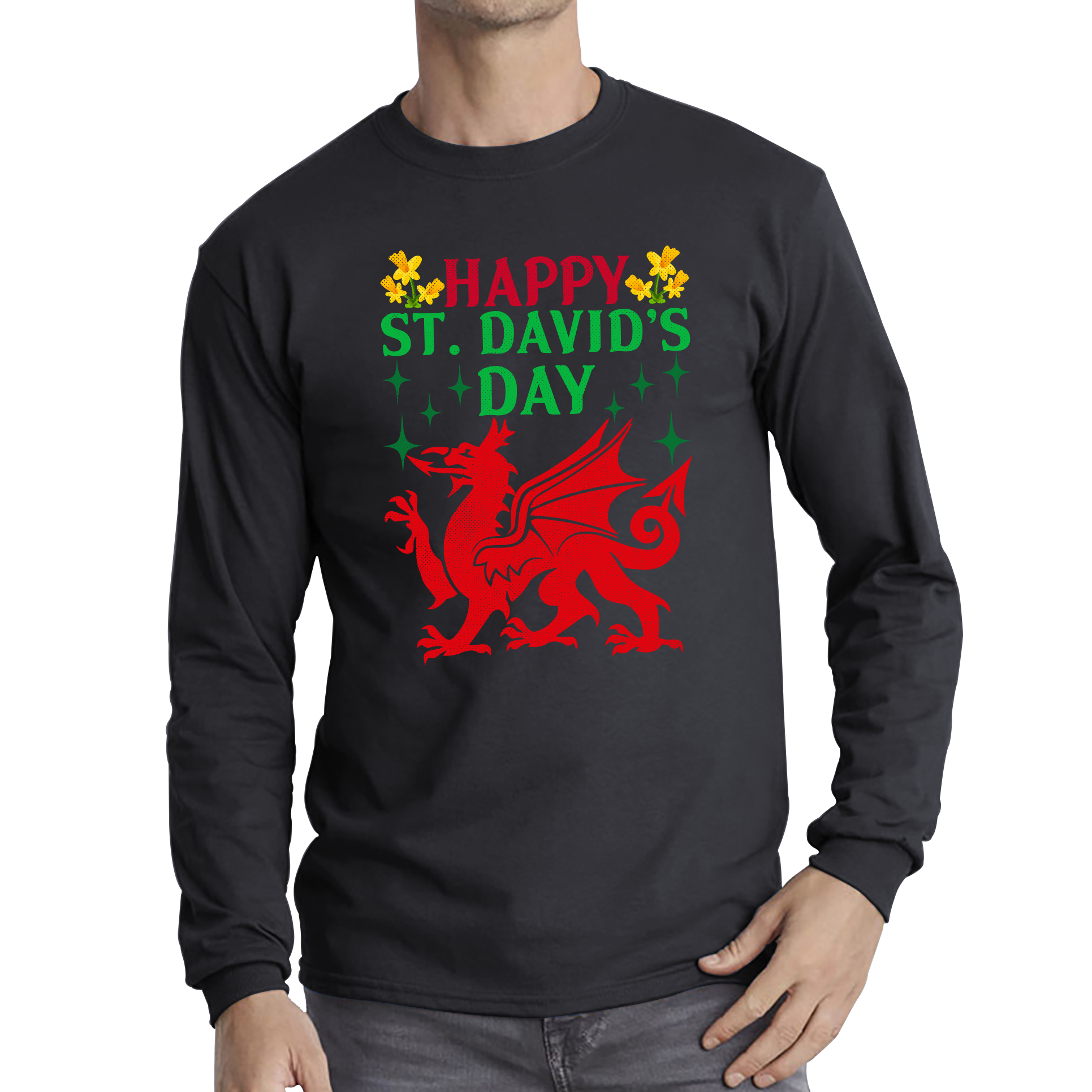 Happy St. David's Day Dragon Welsh Dragon Saint Welsh Language Wales Party Long Sleeve T Shirt