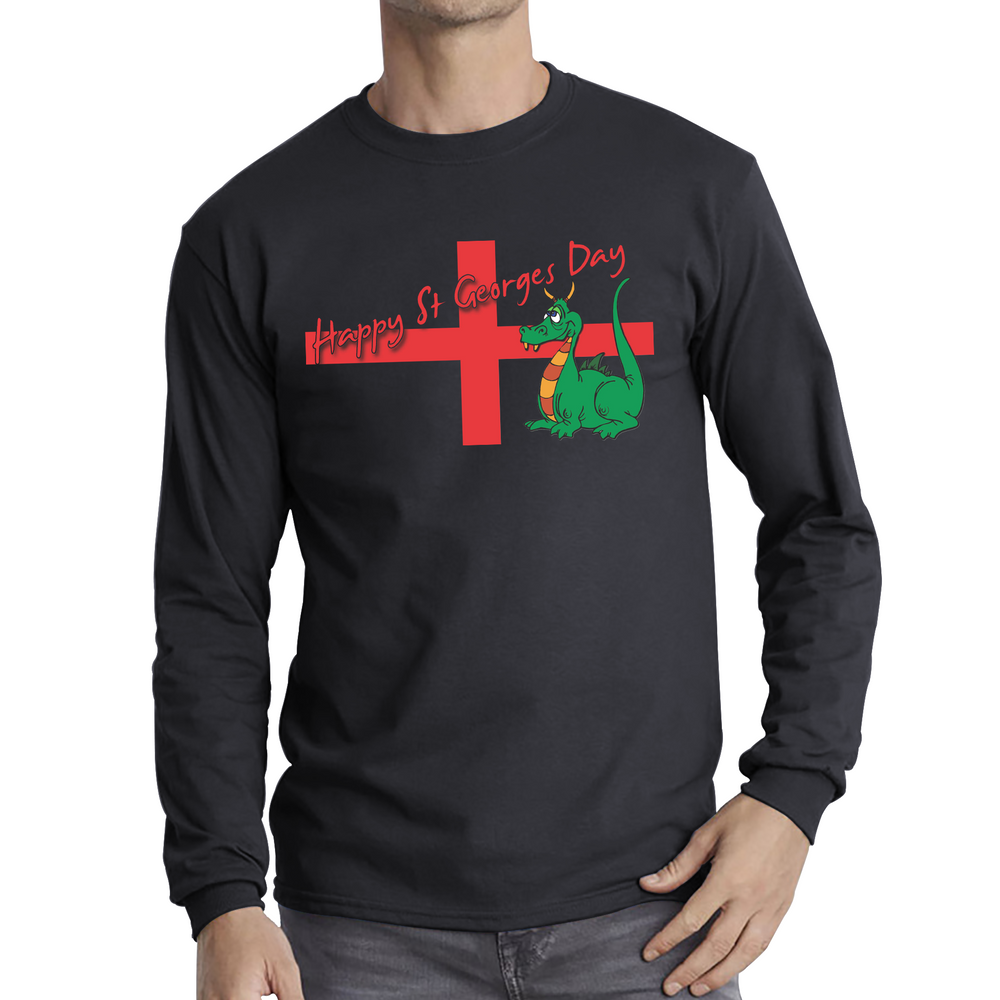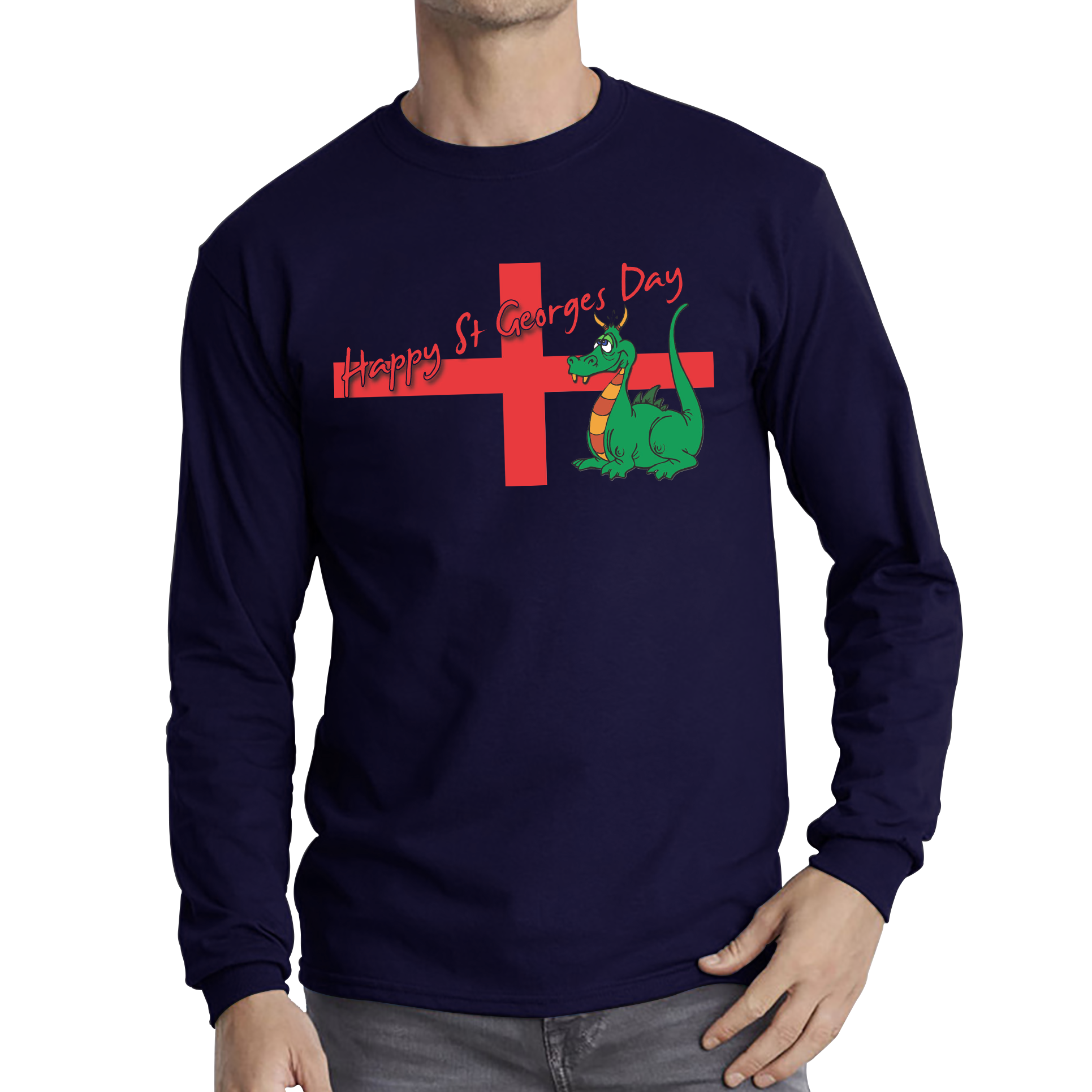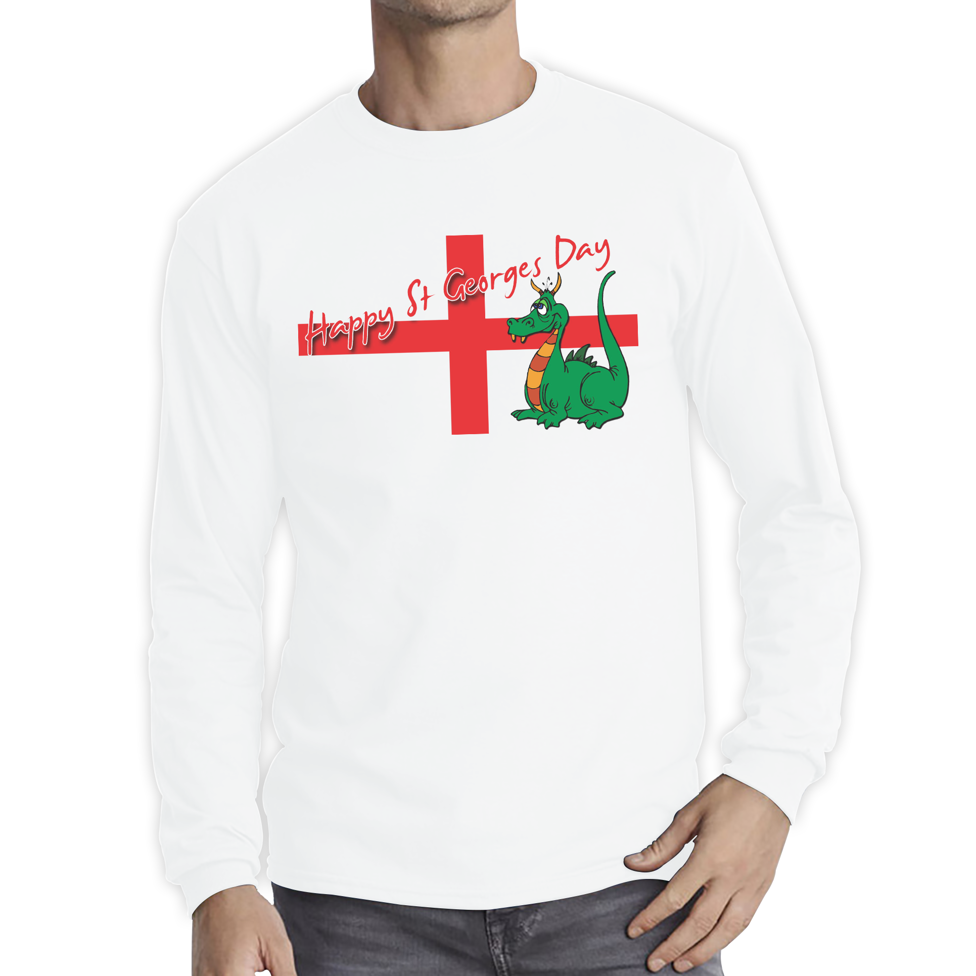 Happy St. George's Day Cute Dragon England Flag Long Sleeve T Shirt