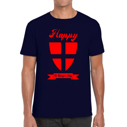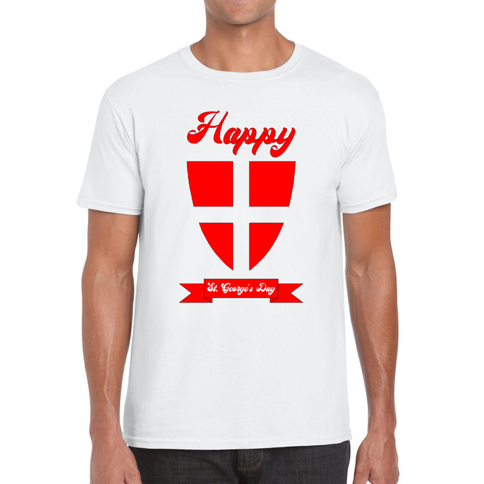 Celebrate St. George's Day with this eye-catching unisex T-shirt. Featuring a bold knight shield graphic and the festive greeting, "Happy St. George's Day," this tee is a stylish way to honor the occasion and show your enthusiasm.
