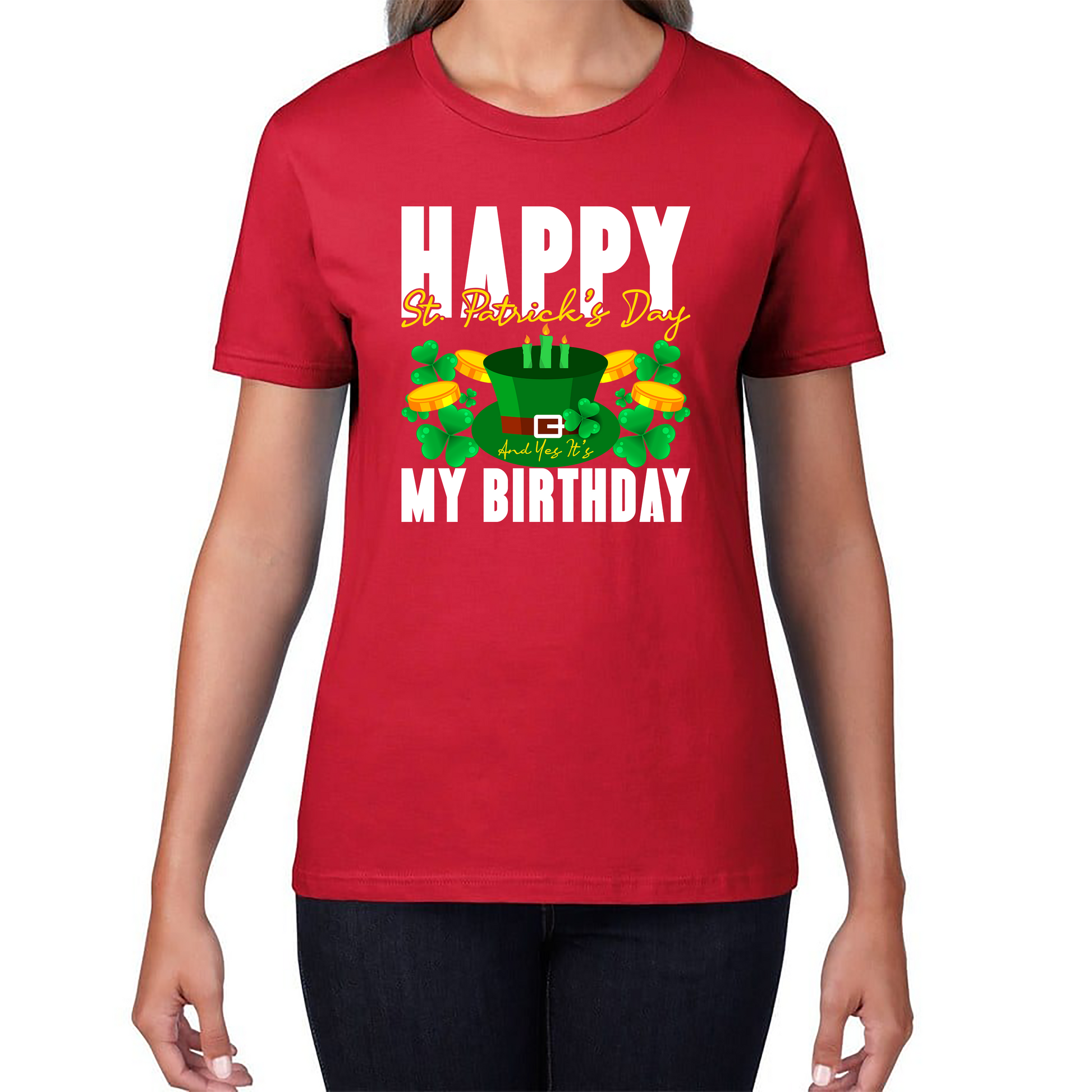 Happy St. Patrick's Day And Yes It's My Birthday Shamrock Birthday Lucky One Irish Festive Womens Tee Top